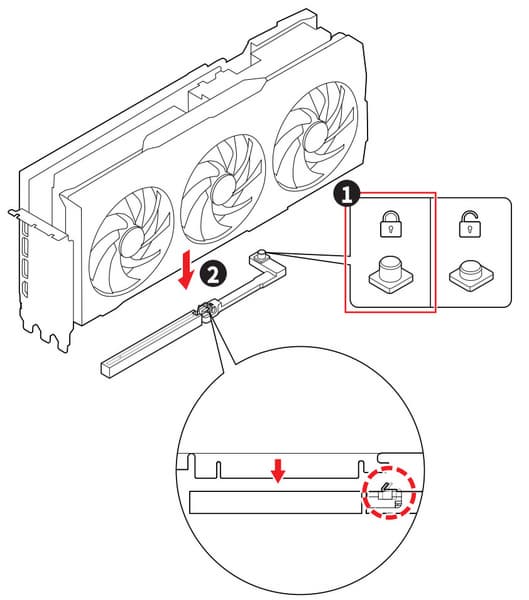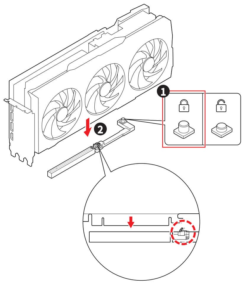 Для удобного извлечения видеокарт из слота PCI_E1 имеется особый механизм EZ-PCIE-Release c кнопкой.