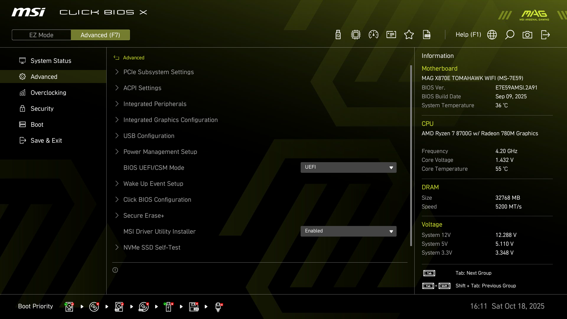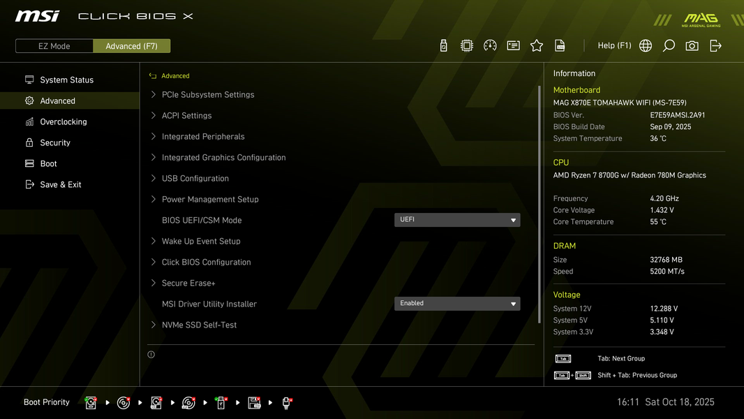 19 линий PCIe оказались занятыми (12 PCIe 4.0 + 3 PCIe 3.0 + 4 SATA). В данном случае связь с аудиокодеком c помощью линии USB 2.0 (от X870E). На поддержку BT (при наличии слота M.2 (key E) расходуется еще один USB 2.0. Детально об этом ниже в разделе USB-портов.