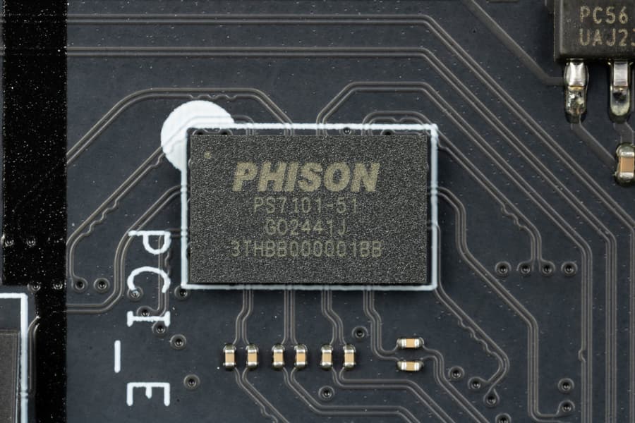 Также матплата имеет аналогичные усилители (ре-драйверы) сигналов PCIe 5.0 от Phison.