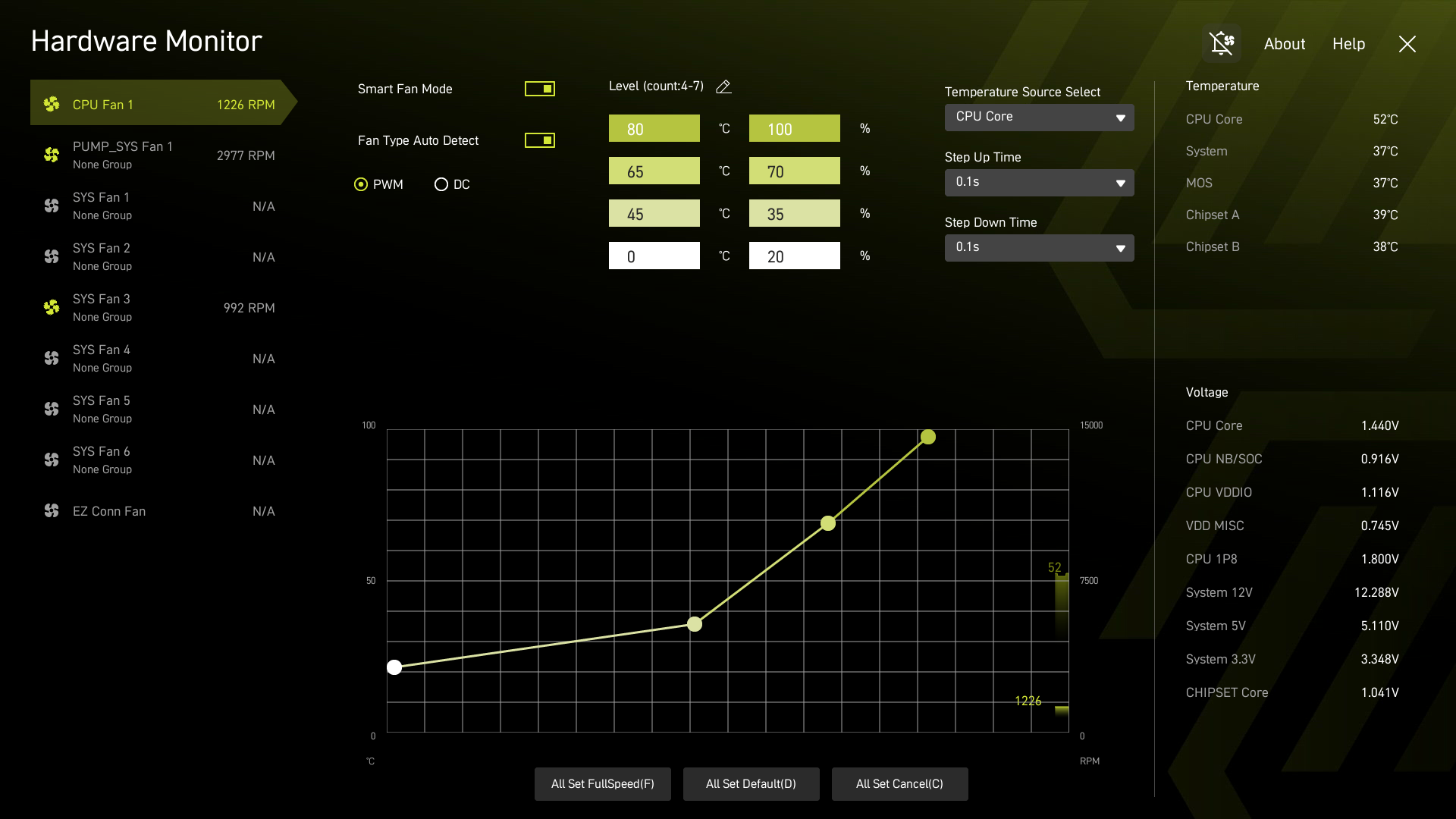 Запускаем все в режиме по умолчанию. Затем нагружаем тестами OCCT.