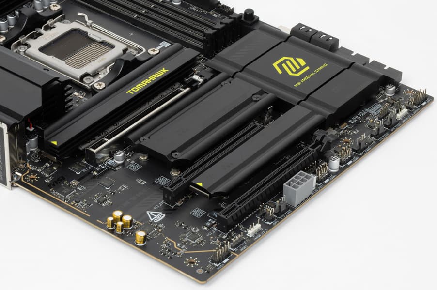 Третий и четвертый слоты M.2 (M.2_3, M.2_4) получают данные от чипсета X870E, а первые два — от CPU, при этом оба получают PCIe 5.0.