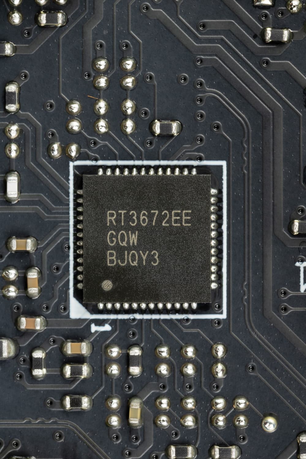 Управляет этой однофазной схемой ШИМ-контроллер Richtek RT3672.