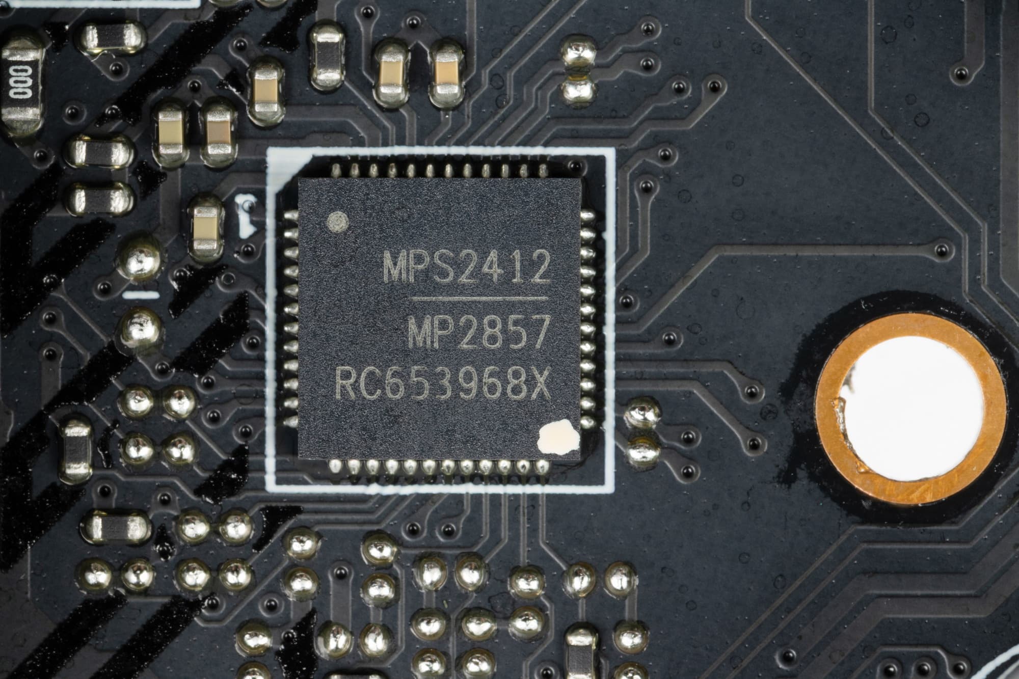 Управление этой схемой возложено на ШИМ-контроллер MPS MP2857 (он поддерживает до 18х фаз).