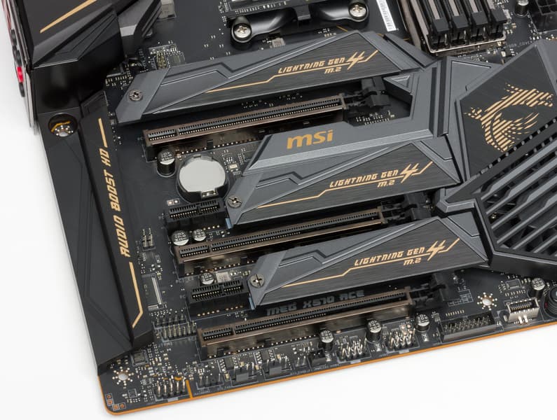 Слоты M.2 поддерживают все современные типы накопителей этого форм-фактора, с интерфейсами PCI-E и SATA. Их можно видеть на фото через одно выше.