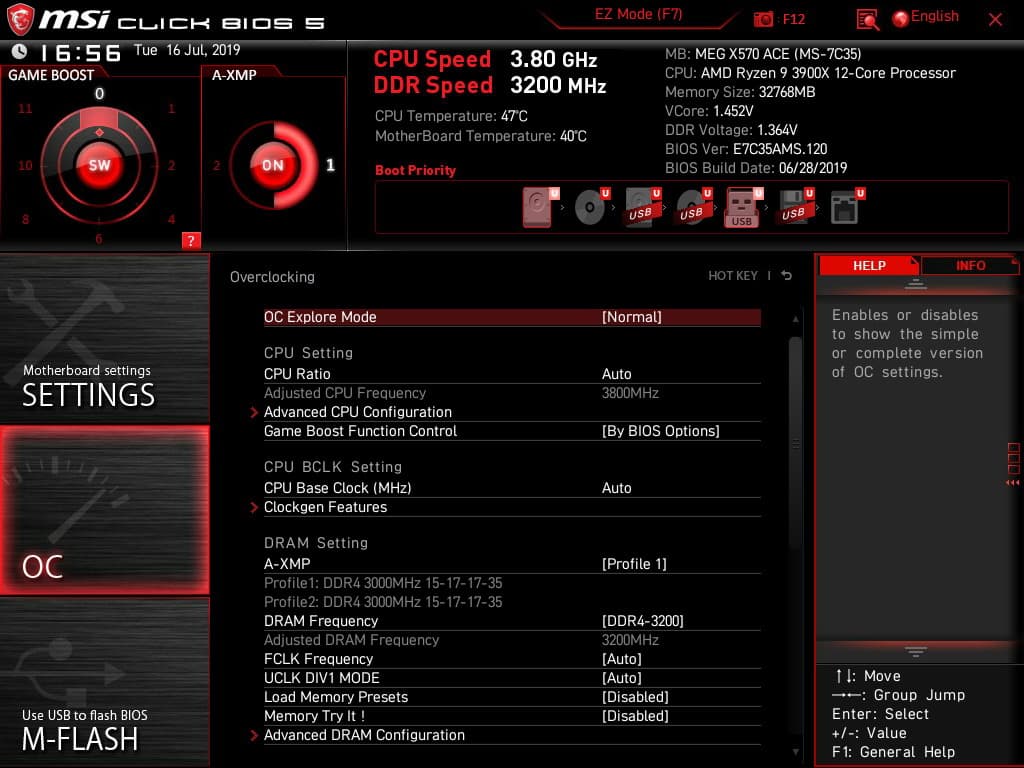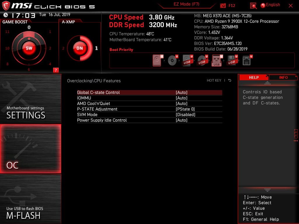Понятное дело, что эти режимы задают довольно жесткие параметры напряжений и частот и входят подчас в конфликт с теми параметрами, что задает сама AMD. Ведь уже широко известно, что тем самым Precision Boost разработчик по сути заведомо разгоняет процессоры и выжимает из них максимум. Это как раз к слову о том самом «барабане» Game Boost, что ранее нам попадался на материнской плате. Как через Dragon Center, так и через BIOS/UEFI можно выбрать: управлять этими пресетами будем аппаратно или программно: то есть просто методом физического переключения «барабана» либо смена пресета будет идти программным путем. Однако, как показала практика, он по сути просто унаследован от предыдущих моделей материнских плат и подчас бесполезен. К тому же, есть AMD Ryzen Master, но про него позже.