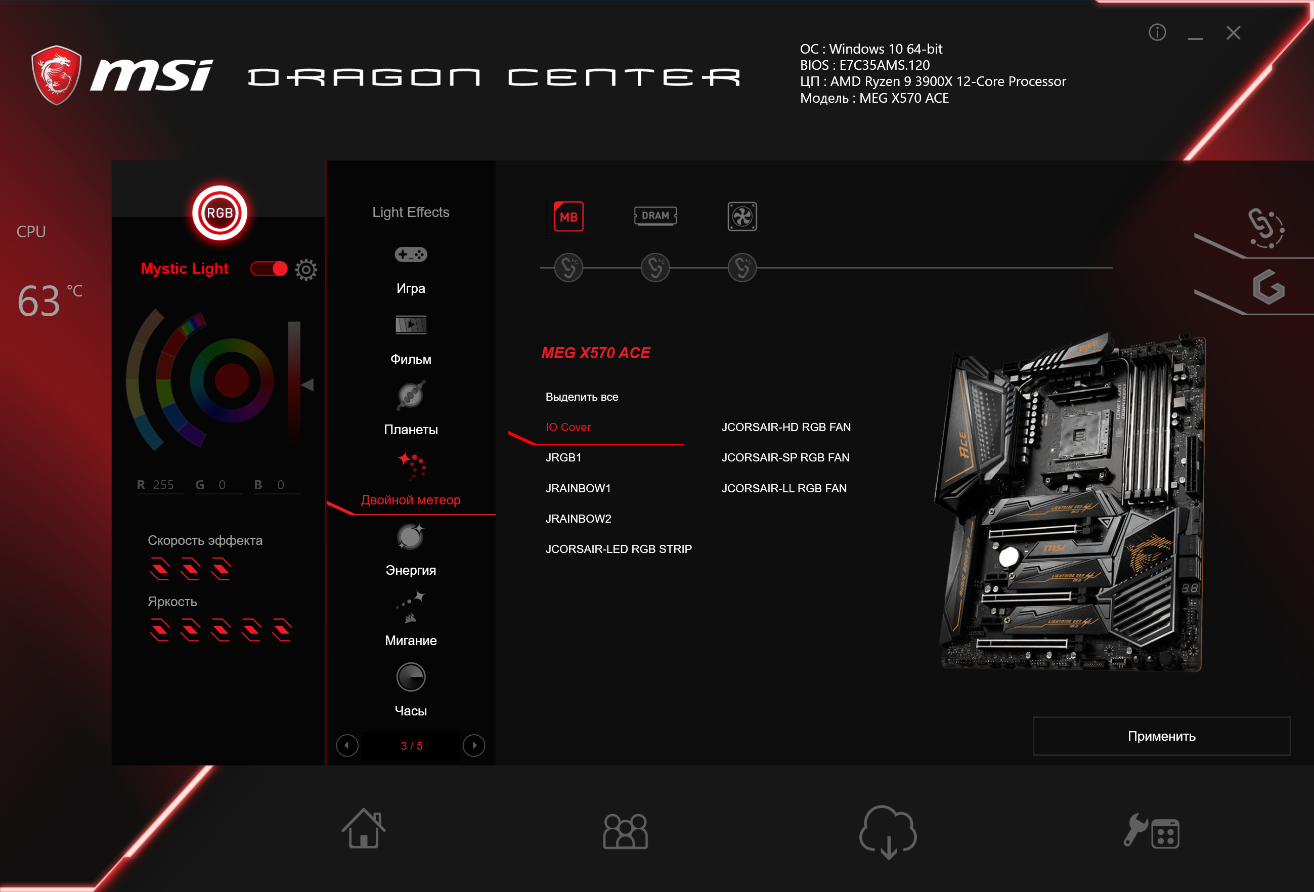 Далее рассмотрим раздел управления подсветкой Mystic Light.