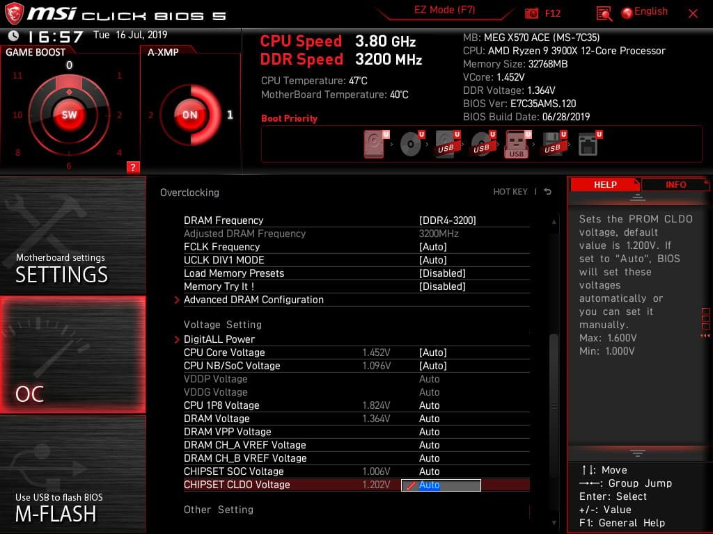 Разработчики из MSI также решили подстраховаться и установить небольшой вентилятор на X570, однако жестко задали режим его включения при нагреве чипсета больше 70 градусов. Если нагрев меньше, то вентилятор выключен.