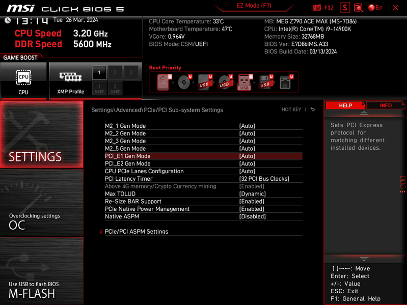 Не забываем, что нижний левый слот M.2_4 умеет работать с накопителями с интерфейсом PCIe версии 5.0. Зная, что такие устройства сегодня очень сильно нагреваются, потому и поставляются со своими массивными радиаторами охлаждения, очень странно выглядит желание инженеров MSI накрыть этот слот и соседний M.2_5 единым радиатором (скорее всего последний придется снять вообще при использовании модуля M.2 PCIe 5.0).