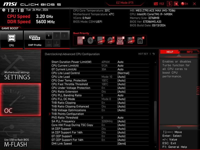 Плата MSI MEG Z790 Ace Max поддерживает процессоры Intel Core 12/13/14-го поколений, выполненные под разъем (сокет) LGA1700.