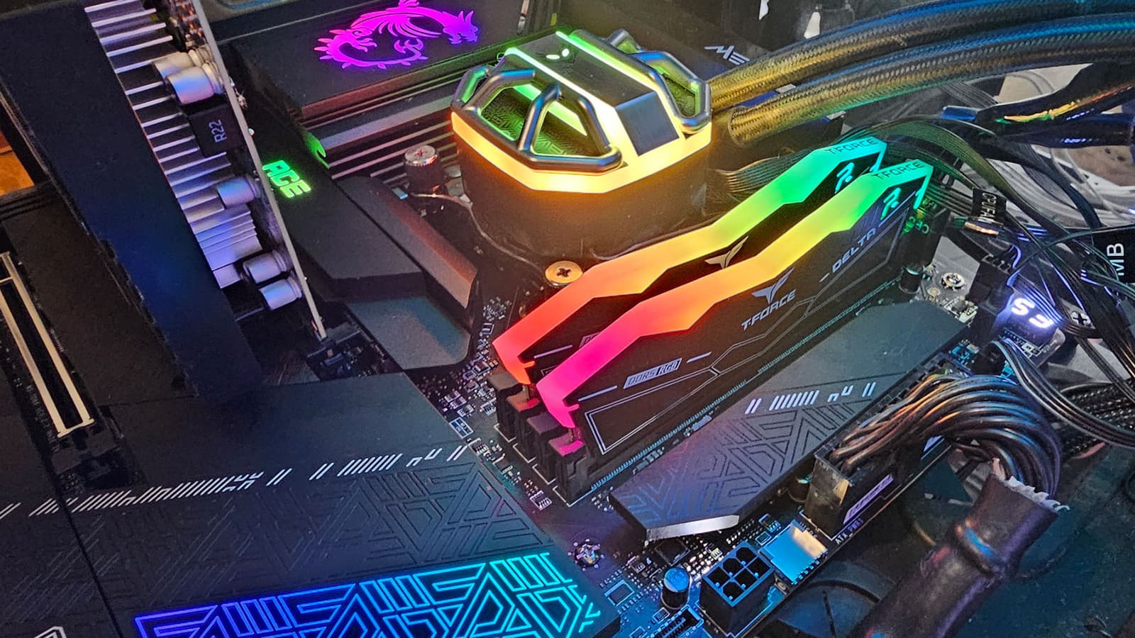 Радиатор VRM, идущий вдоль заднего блока портов, имеет кожух, прикрывающий тот самый блок, оснащенный подсветкой.