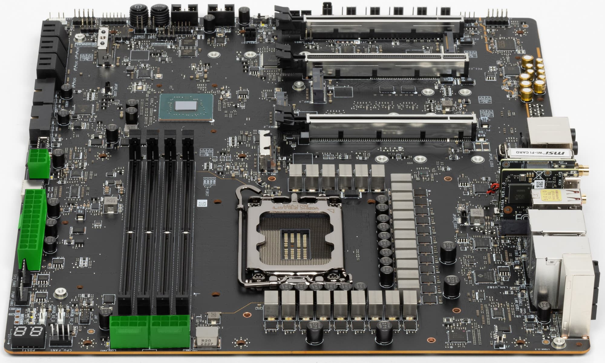 Также плата оснащена Intel Thunderbolt 4 и комплектуется соответствующим контроллером на основе Intel JHL8540, который выполнен в виде отдельного модуля, вставляемого в специальный слот PCIe x4 4.0, расположенный в зоне задних портов ввода/вывода.
