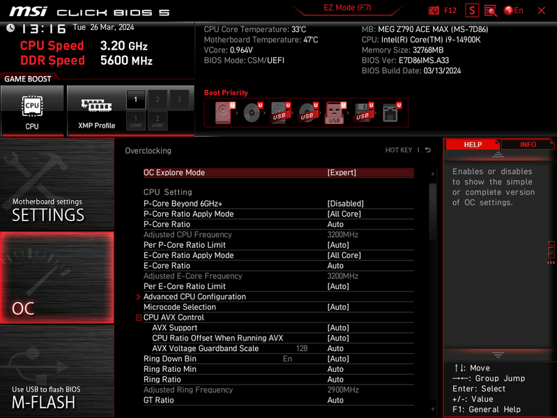 В настройках BIOS данной платы просто море настроек по оверклокингу, чтобы перепробовать хотя бы треть из них – потребуются недели тестов, проб и ошибок -) Поэтому просто мне попалась вот такая опция, где возможна установка 6.3 (!!!) ГГц на некоторых ядрах (это пресет, специалисты MSI сами настроили все опции). Эта настройка не заработала: тестовая программа OCCT даже отказалась запускаться, ну и через минуту – BSOD.