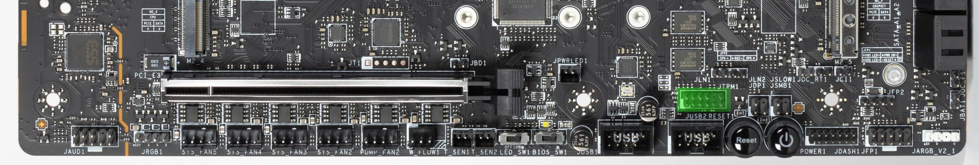 Особо отмечу, что слот для SSD-накопителей M.2_4 также подключен к CPU, получает PCIe 5.0, но делит ресурсы со слотом PCIe x16_2: или тот, или другой.