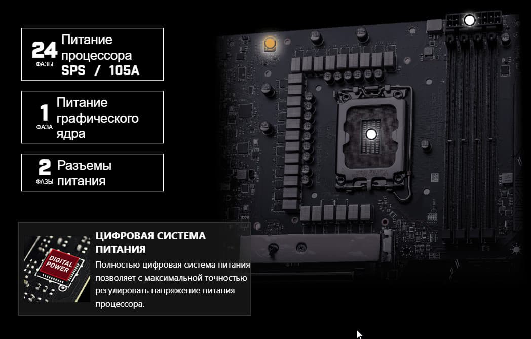 | Поддерживаемые процессоры | Intel Core 12/13/14-го поколений |