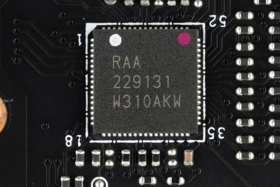 Каждый канал фазы VCore имеет суперферритовый дроссель и RAA 22010540 MOSFET от Renesas) на 105 А.