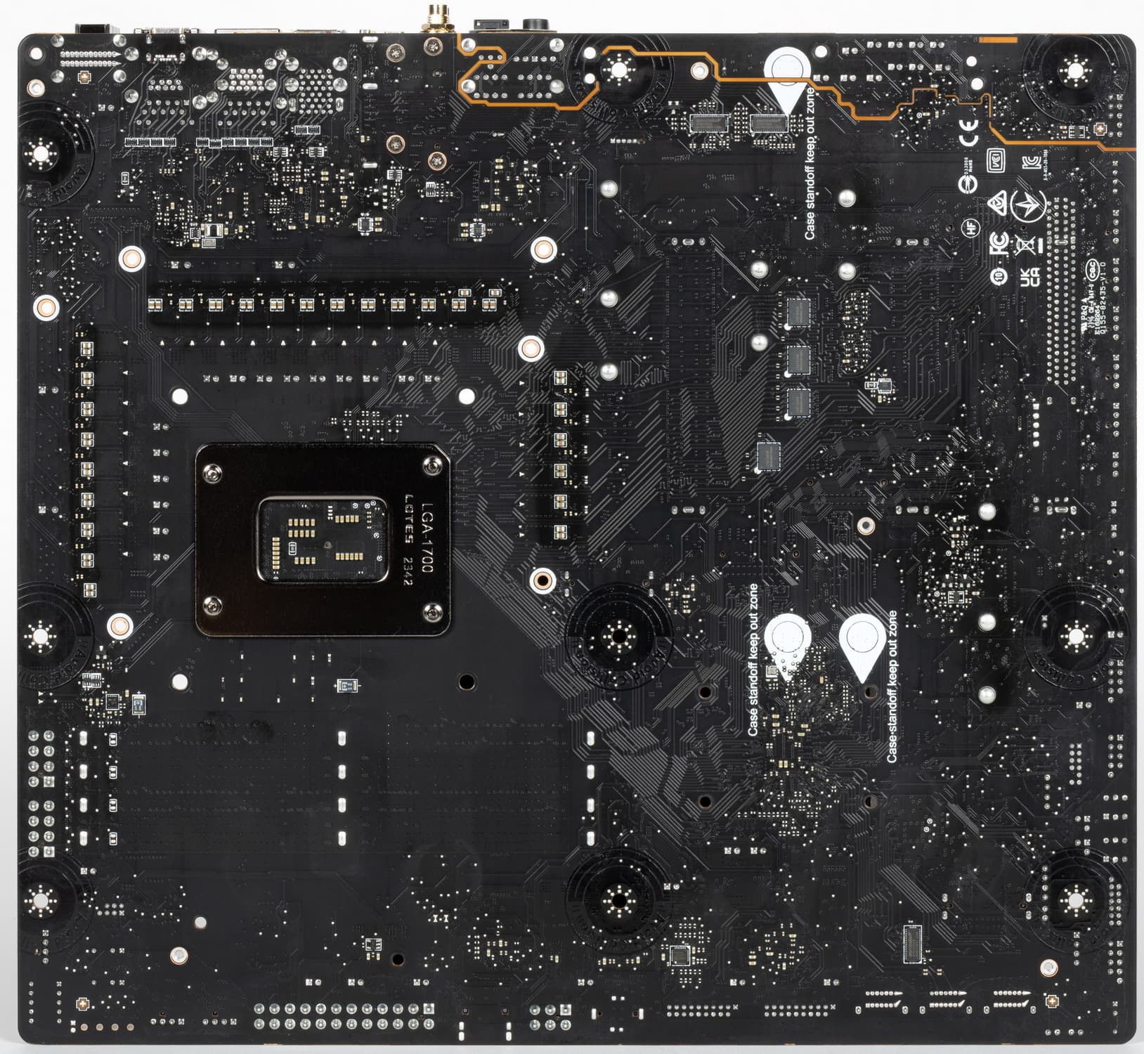И я еще раз заострю внимание на том, что такую матплату вряд ли получится установить в корпусе, где в качестве опор для материнских плат используются не привычные всем латунные втулки, а выпрессованные возвышения, которые (по опыту) много шире, нежели выемки в задней пластине у материнки.