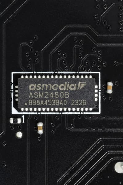 А также имеются усилители (ре-драйверы) сигнала PCIe 4.0 от ASMedia.