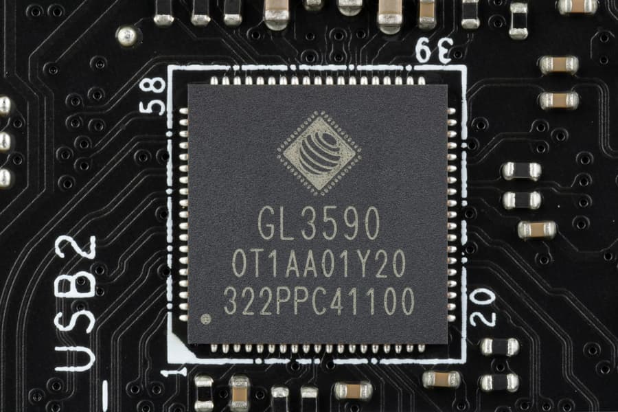 - Genesys Logic GL3590 (4 USB 3.2 Gen2 через 4 разъема Type-A на задней панели) (1 линия USB 2.0);