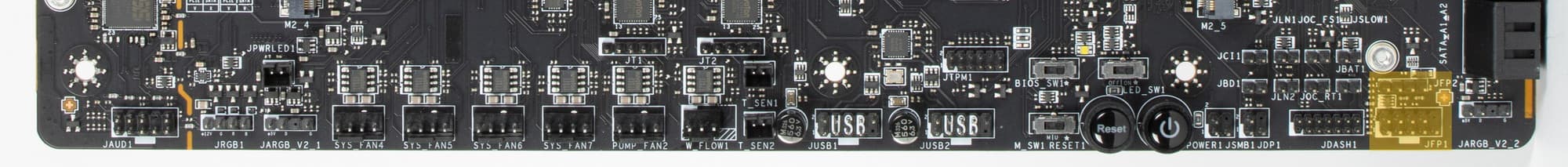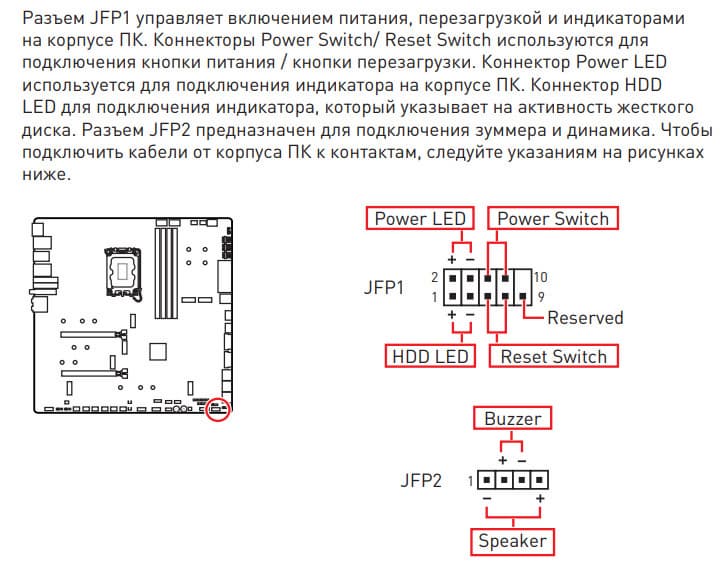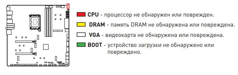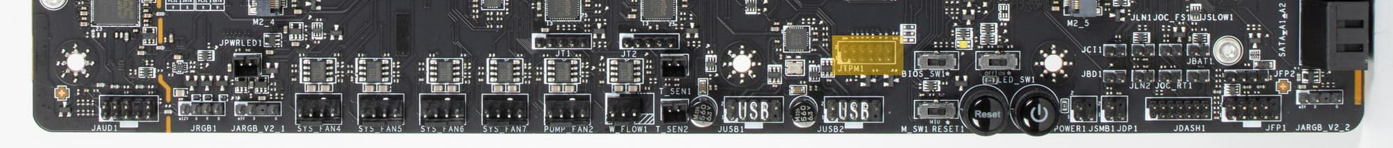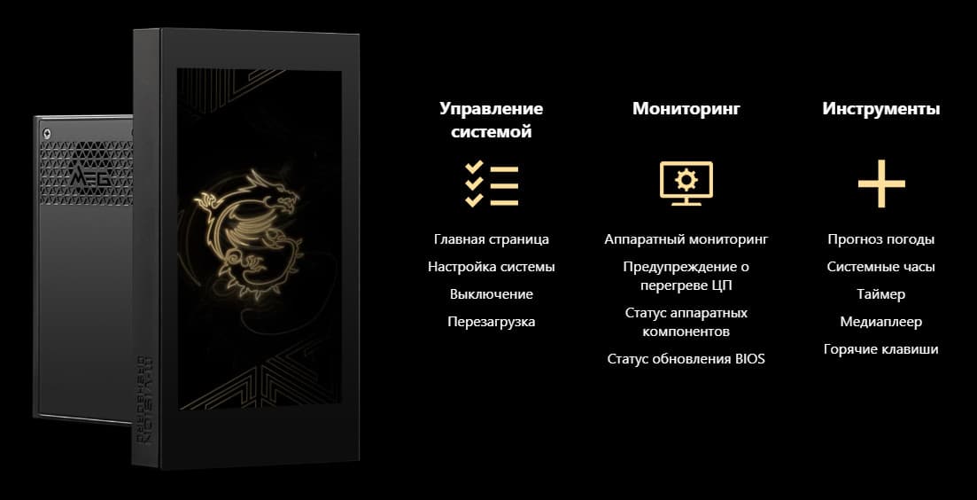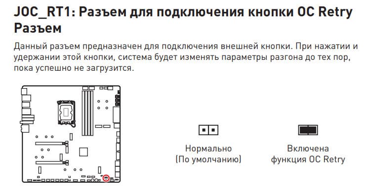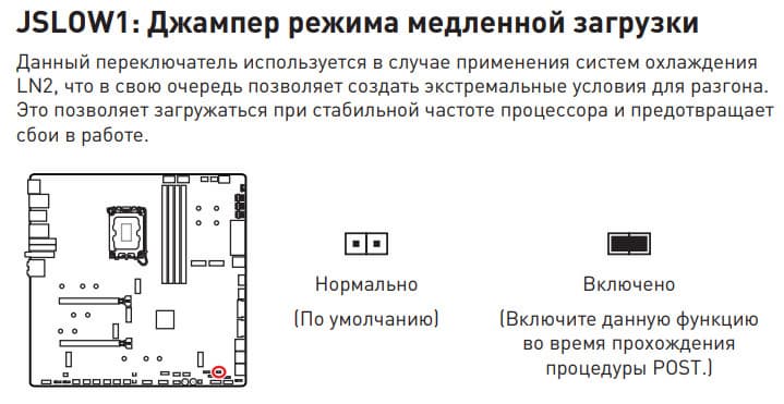 | Прочие внутренние элементы | 24-контактный разъем питания ATX 2 8-контактный разъем питания EPS12V 1 6-контактный разъем питания PCIe 1 слот M.2 (E-key), занят адаптером беспроводных сетей 1 слот PCIe x4, занят адаптером Thunderbolt4 2 разъема для подключения портов USB 3.2 Gen2x2 Type-C 2 разъема для подключения 4 портов USB 3.2 Gen1 2 разъема для подключения 4 портов USB 2.0 10 разъемов для подключения 4-контактных вентиляторов и помп ЖСО 1 разъем для подключения неадресуемой RGB-ленты 3 разъема для подключения адресуемой ARGB-ленты 1 разъем аудио для передней панели корпуса 1 переключатель для отключения подсветки LED_SW1 1 переключатель версий BIOS BIOS_SW1 1 переключатель работы USB-порта для панели M-Vision M_SW1 1 разъем для подключения контроллера панели настроек JDASH1 1 разъем для подключения систем безопасности TPM 2 разъема для включения режима работы LN2 1 разъем для включения режима медленной загрузки JSLOW1 1 разъем для подключения кнопки повторных загрузок JOC_RT1 1 разъем для подключения режима безопасной загрузки JOC_FS1 2 разъема для термодатчикa 1 разъем для отслеживания скорости потока жидкости помп СВО W_FLOW 2 разъема для подключения управления с передней панели корпуса 1 кнопка включения питания Power 1 кнопка перезагрузки Reset |