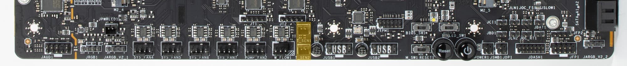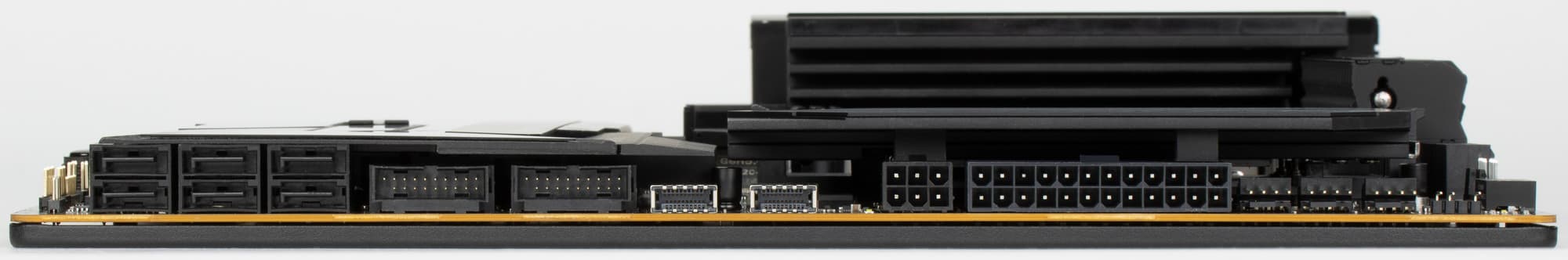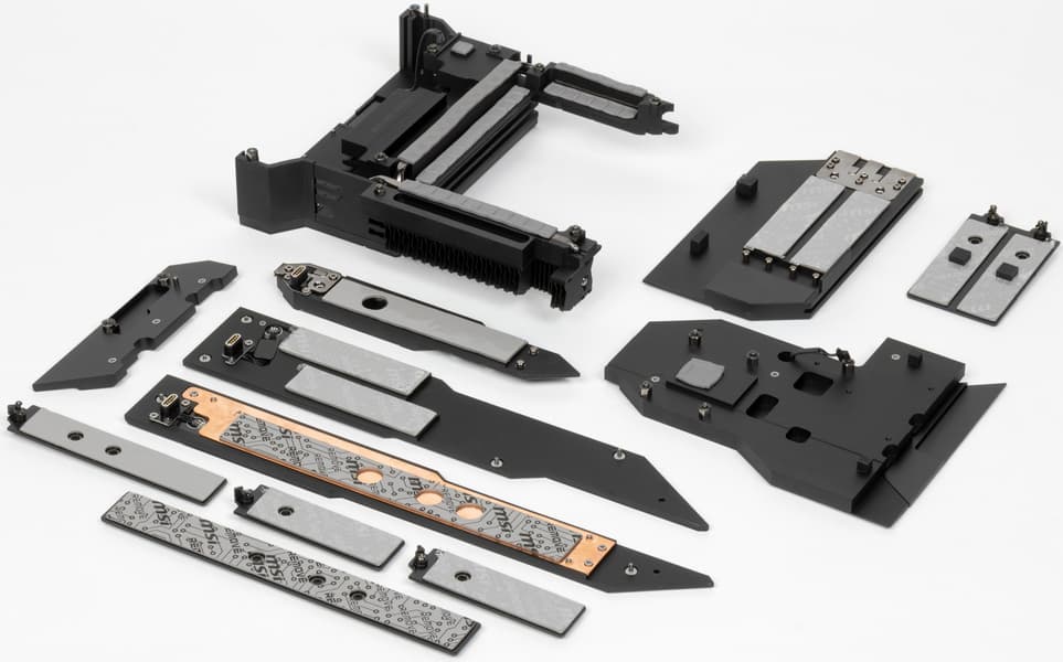 Все M.2 слоты имеют радиаторы. Верхний M.2_1 обладает отдельным радиатором, когда как остальные слоты M.2 имеют общие (попарные) радиаторы.