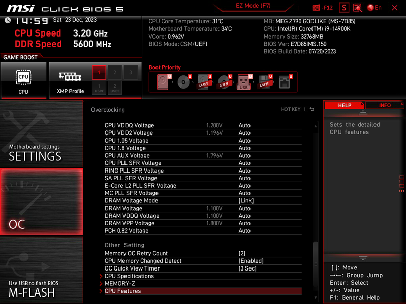 Еще раз надо напомнить, что MSI MEG Z790 Godlike поддерживает процессоры Intel Core 12/13/14-го поколений, выполненные под разъем (сокет) LGA1700.
