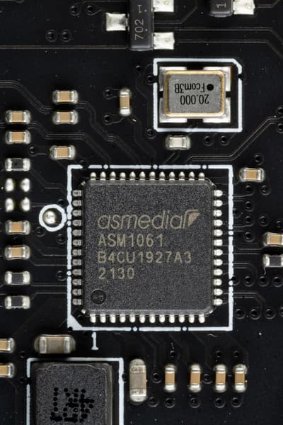 А еще два порта SATA (промаркированные как A1, A2) реализованы через хаб ASM1061 от ASMedia (на него ушла 1 линия PCIe от Z790), они RAID не поддерживают.