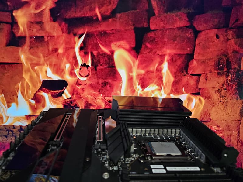 Затем вручную выставил 5,9 ГГц по всем Р-ядрам и 4,6 ГГц по всем Е-ядрам. Стресс-тесты начали падать, но зависаний не было. При этом выяснилось, что был превышен порог стабильности всего на 500 МГц. То есть при 5,85 ГГц и 4,55 ГГц все стресс тесты прошли отлично, СО отлично справлялась с пиковыми нагрузками. Нагрев уже подбирался к границе в 90 градусов, но еще имелся задел, стабильность на высоте. При этом не надо забывать, что это в условиях очень тяжелой стрессовой нагрузки на процессор! Даже самые тяжелые приложения не могут загрузить все ядра на 100% в длительном режиме. Так что, в целом, система питания у данной матплаты отличная, процессор имеет прекрасный задел на автооверклокинг.
