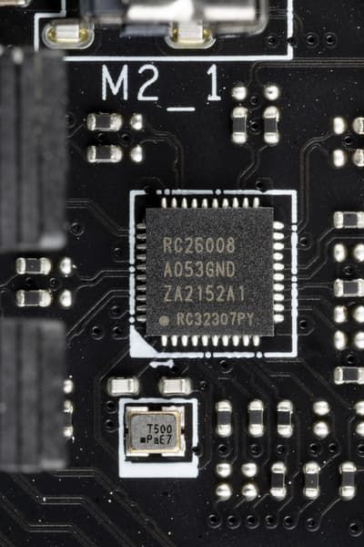 Для поддержания стабильных частот на шине PCIe (и для нужд оверклокеров) имеется внешний тактовый генератор Renesas RG26008.