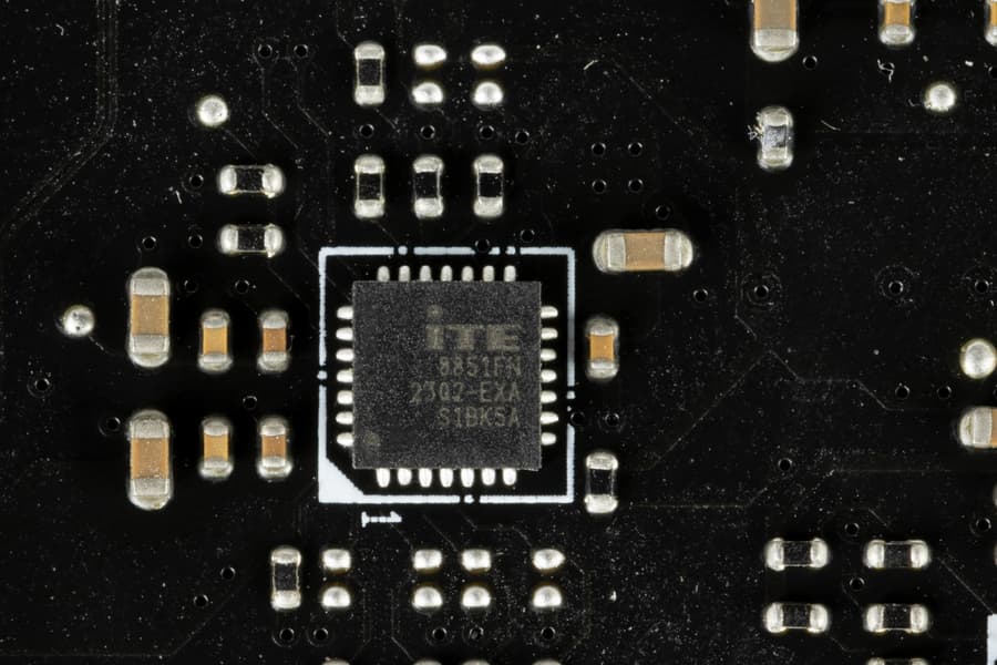 Следует особо отметить, что для получения очень быстрой зарядки 60 Вт на порту USB 3.2 Gen2x2 следует обязательно подключить питание к 6-контактному разъему PCIe около внутренних портов Type-C. Управляет этим контроллер от ITE.