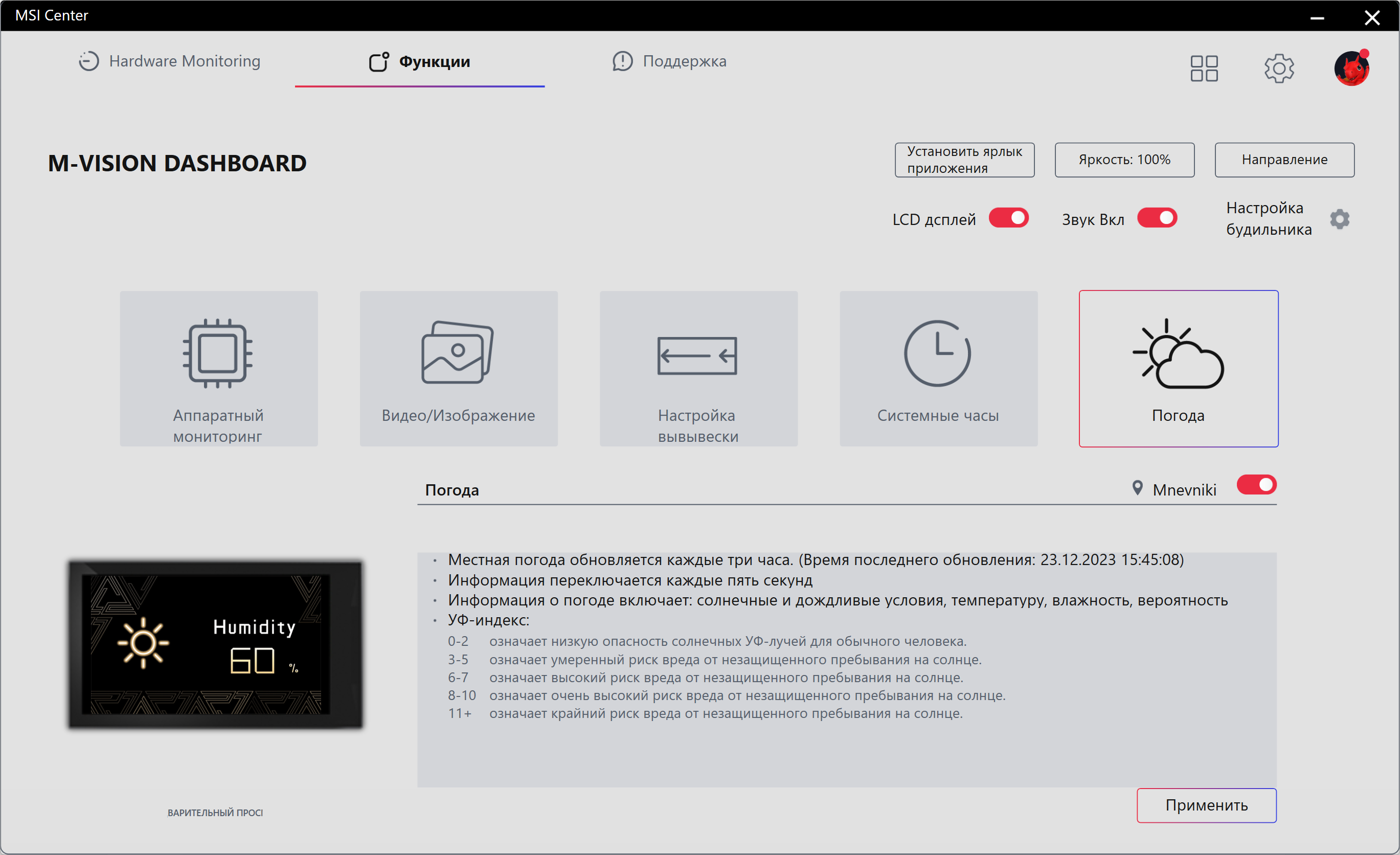 - Внешняя панель M-Vision