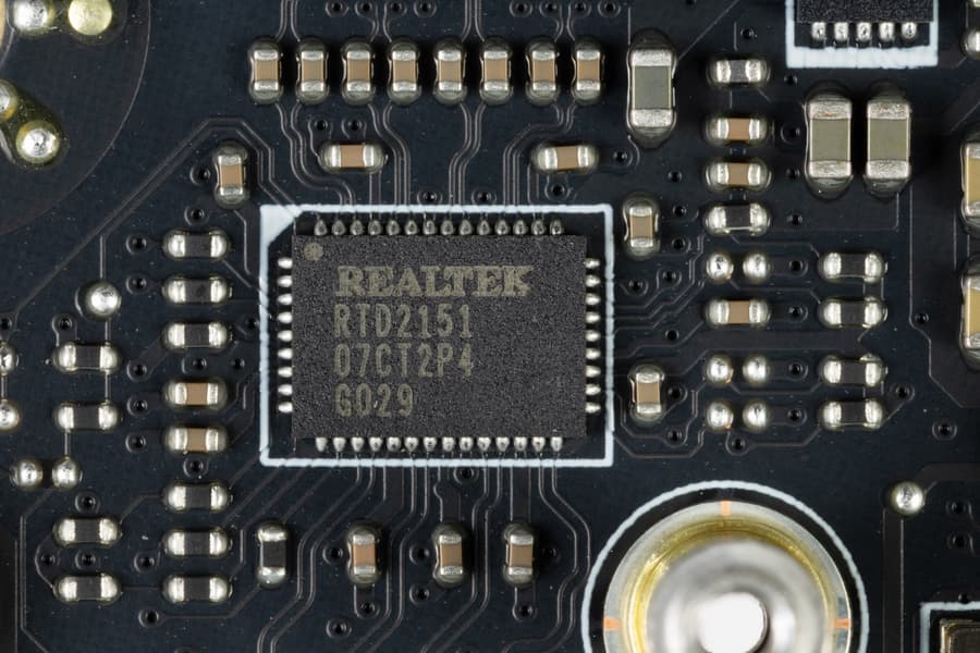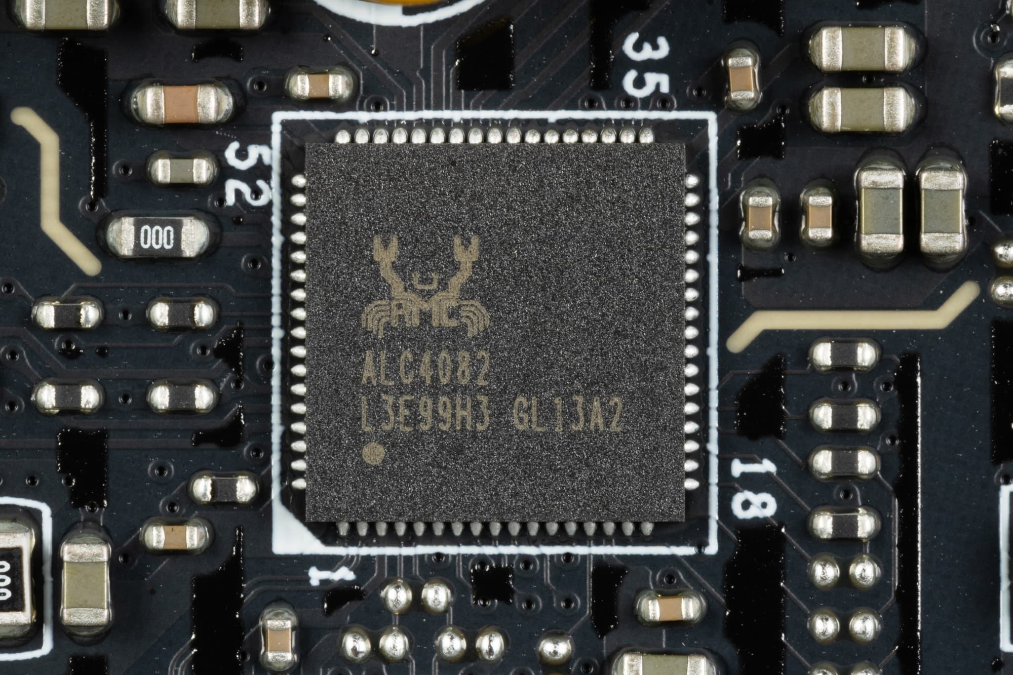 В данном случае плата оснащена аудиоподсистемой, где звуком заведует аудиокодек Realtek ALC4082, он целом обеспечивает вывод звука по схемам до 7.1 с разрешением до 32 бит /384 кГц. Не забываем, что для работы такого кодека требуются сигнальные линии USB 2.0.