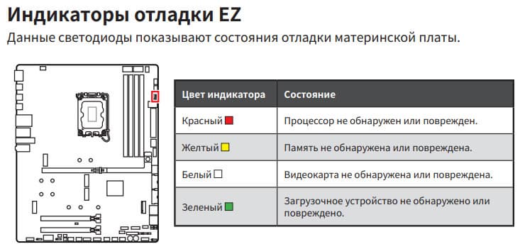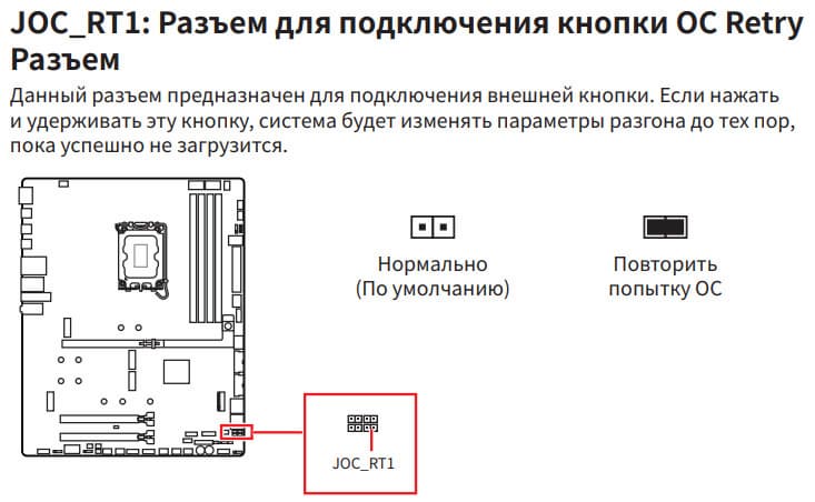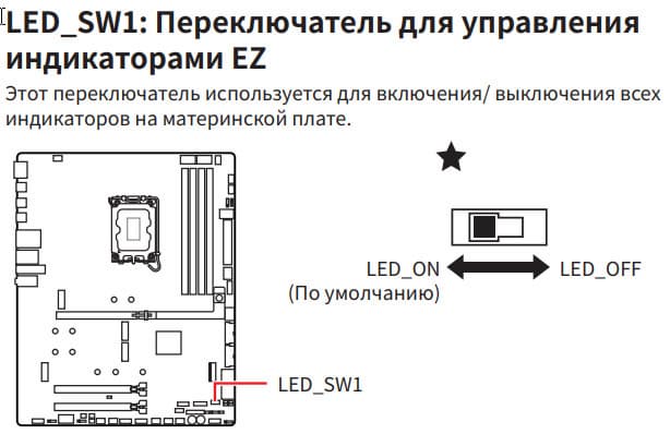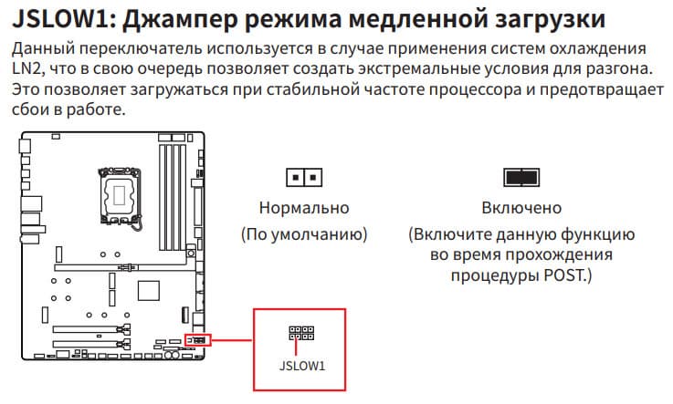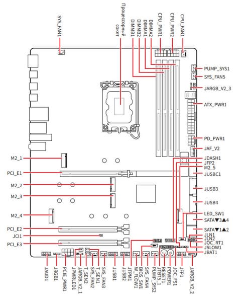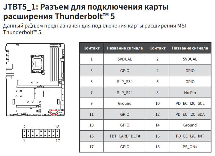 | Прочие внутренние элементы | 24-контактный разъем питания ATX 2 8-контактный разъем питания EPS12V 1 8-контактный разъем питания PCIe 1 6-контактный разъем питания PCIe 1 слот M.2 (E-key), занят адаптером беспроводных сетей 1 разъем для подключения порта USB 3.2 Gen2x2 Type-C 2 разъема для подключения 4 портов USB 3.2 Gen1 2 разъема для подключения 4 портов USB 2.0 8 разъемов для подключения 4-контактных вентиляторов и помп ЖСО 3 разъема для подключения адресуемой ARGB-ленты 1 разъем для подключения неадресуемой RGB-ленты 1 разъем аудио для передней панели корпуса 1 переключатель подсветки LED_SW 1 переключатель BIOS - BIOS_SW 1 переключатель сброса CMOS 2 разъема для термодатчиков 1 разъем JDASH для подключение контроллера настройки (приобретается отдельно) 1 переключатель JSLOW для медленной загрузки в режиме LN2 с применением экстремального охлаждения 1 переключатель LN2 для включения режима LN2 с применением экстремального охлаждения 1 переключатель JOC_FS для загрузки со сниженными параметрами CPU 1 разъем JOC_RT для подключение внешней кнопки повтора загрузки 1 разъем для подключение дискретных карт Thunderbolt5 1 разъем для подключение систем безопасности TPM 2 разъема для подключения управления с передней панели корпуса 1 разъем для подключение проприетарных систем охлаждения от MSI 1 разъем WFLOW для контроля потока жидкости в кастомных СЖО |