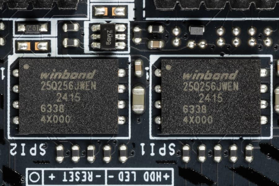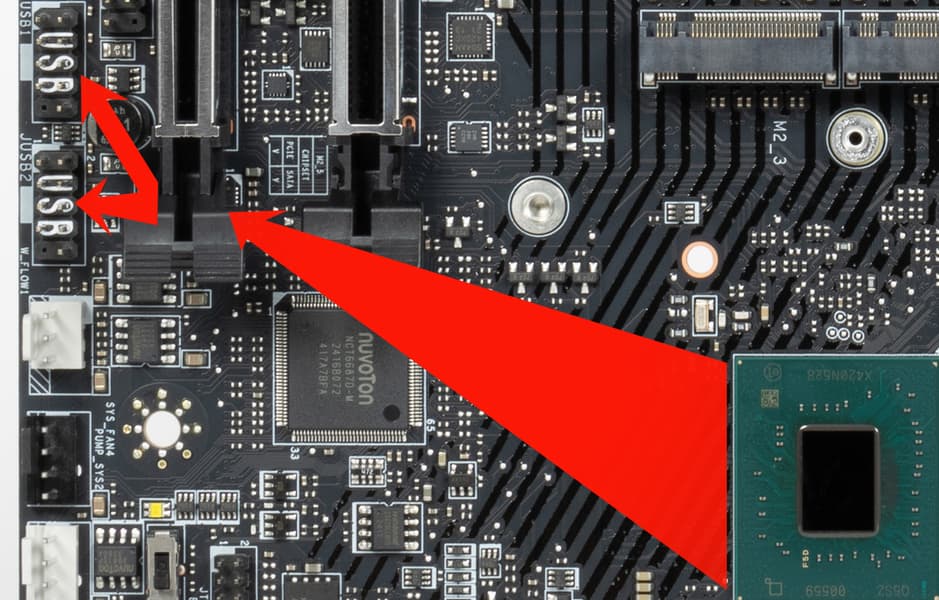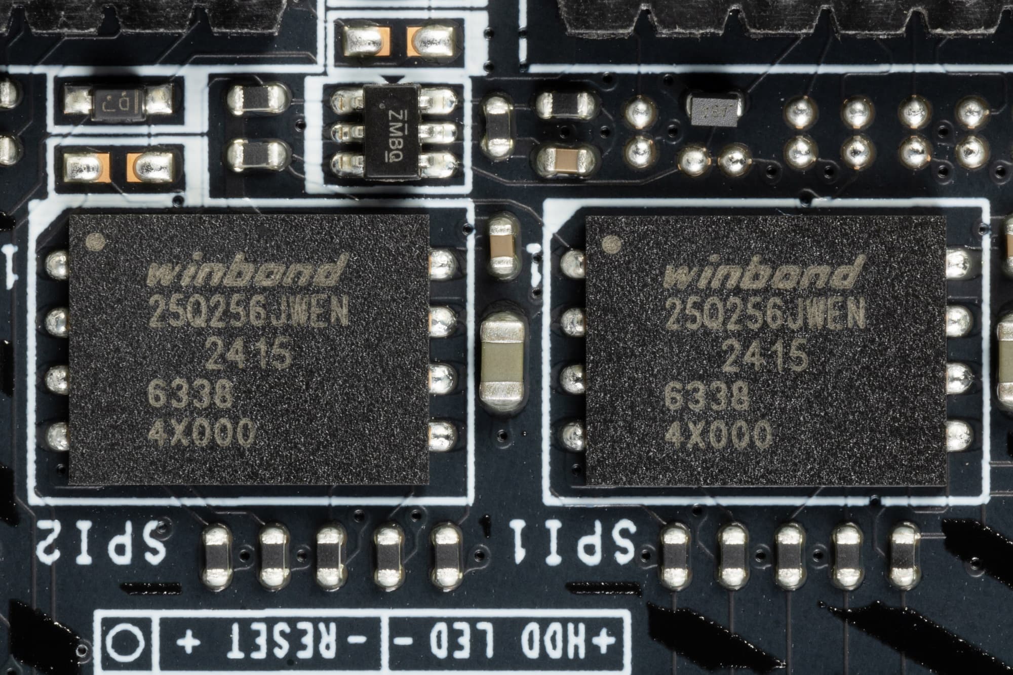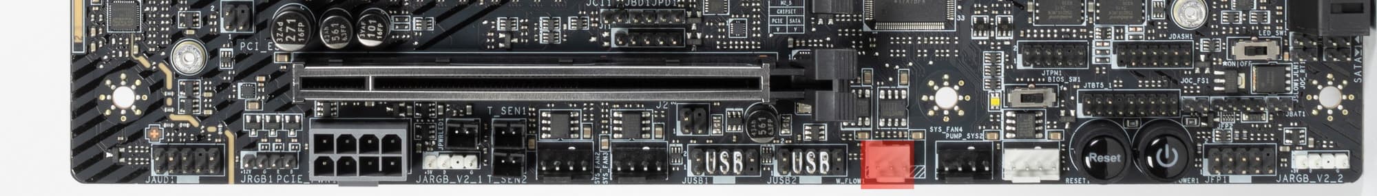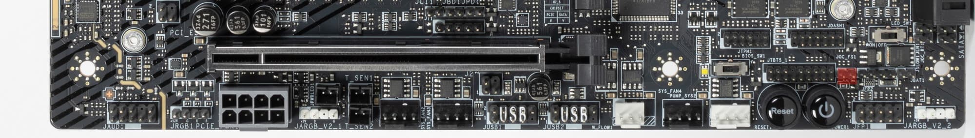 - 4 порта USB 2.0/1.1: все реализованы через контроллер Genesys Logic GL850G (он расположен под слотом PCIe E3, поэтому его не видно, на него потрачена 1 линия USB 2.0 от Z890) и представлены двумя внутренними разъемами (каждый на 2 порта)