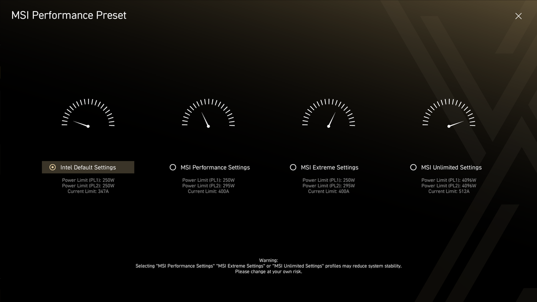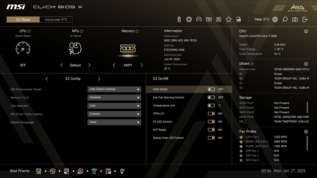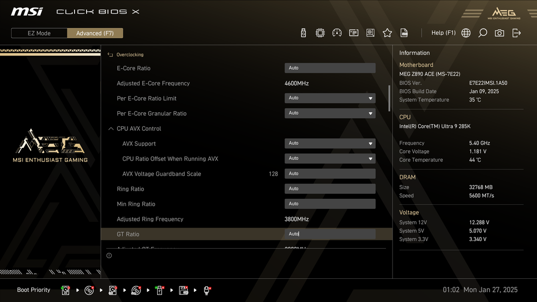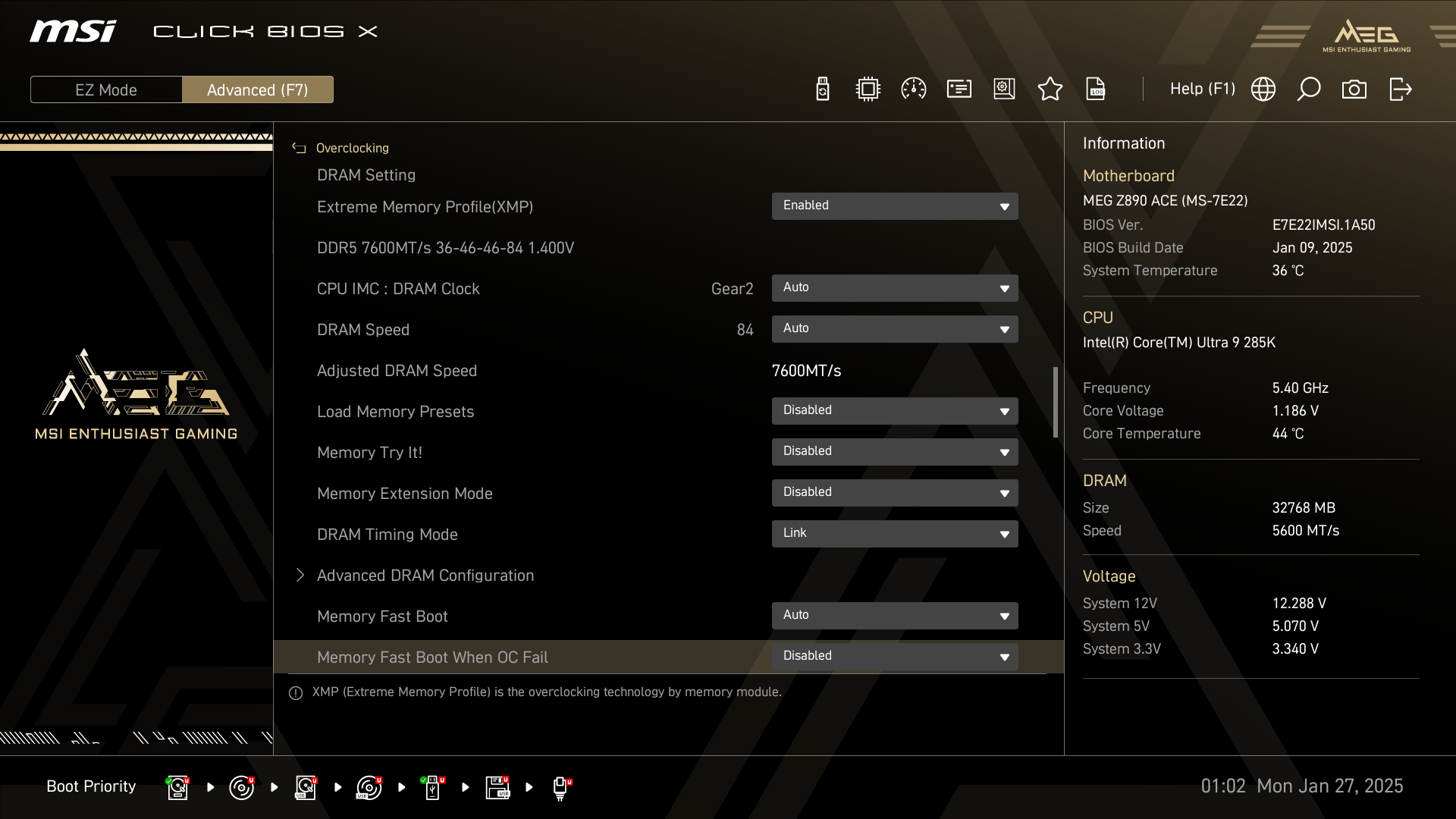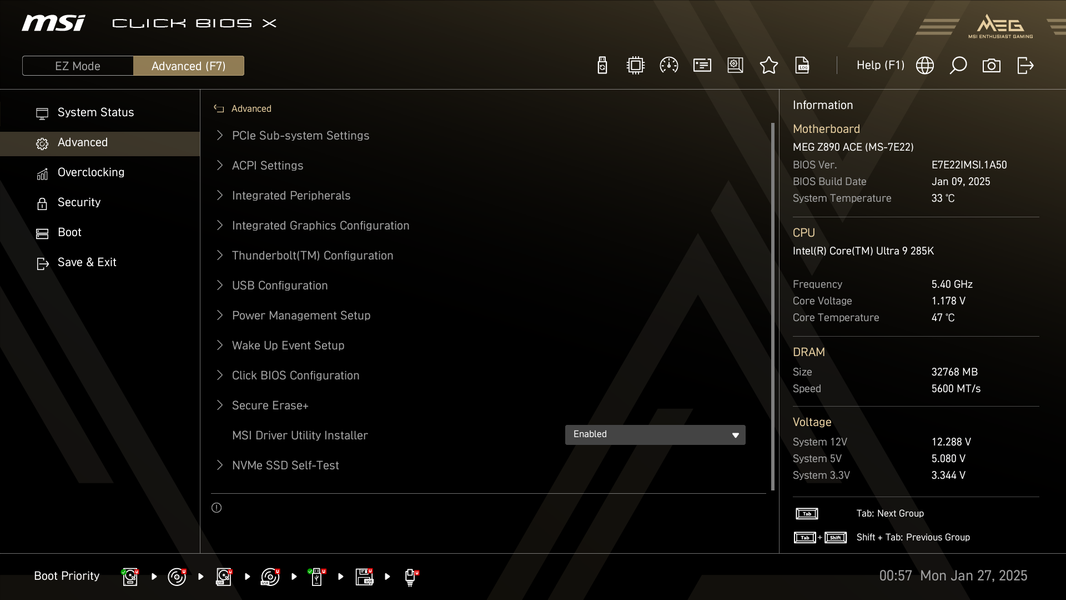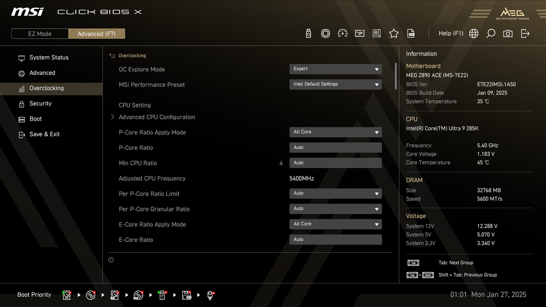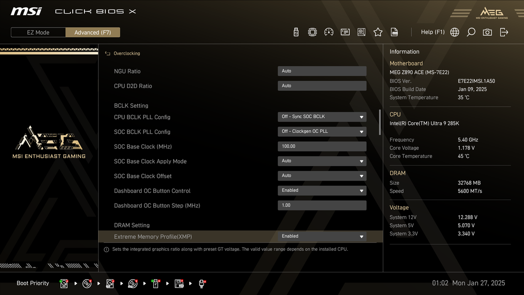 А теперь мы включим аналогичную оптимизацию, но не через MSI Center, а просто в BIOS активируем профиль MSI Extreme.