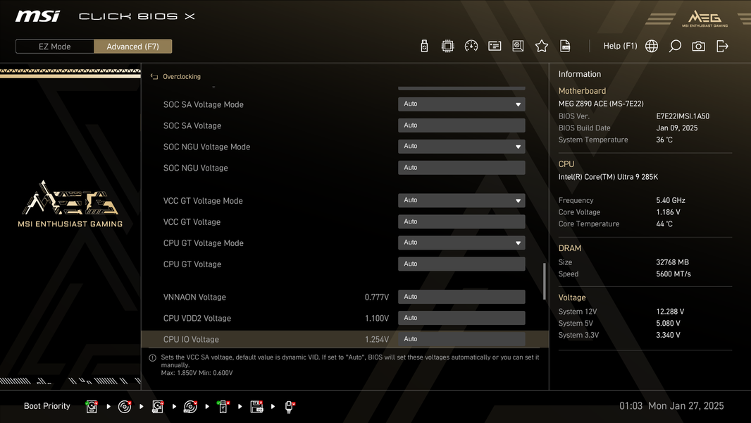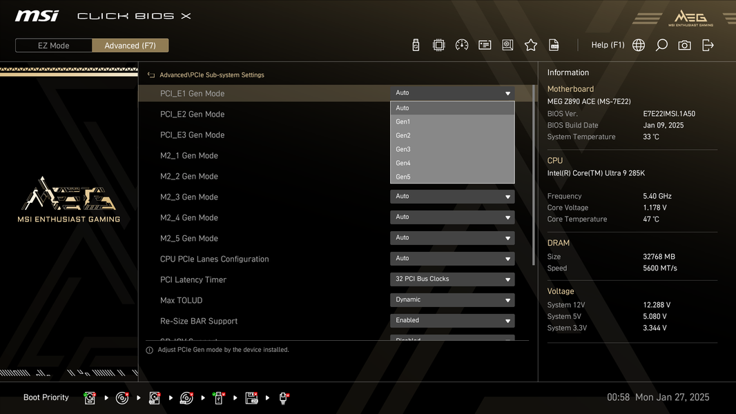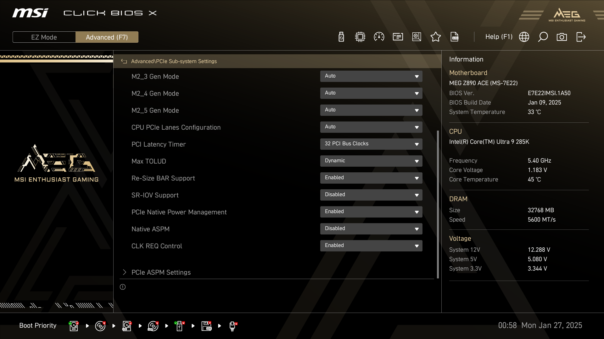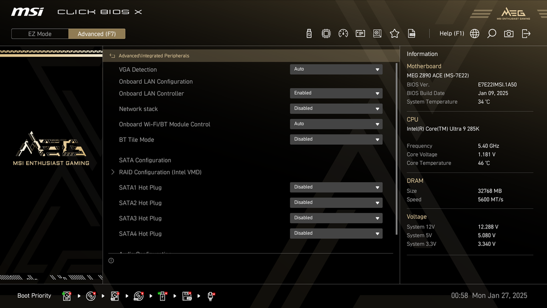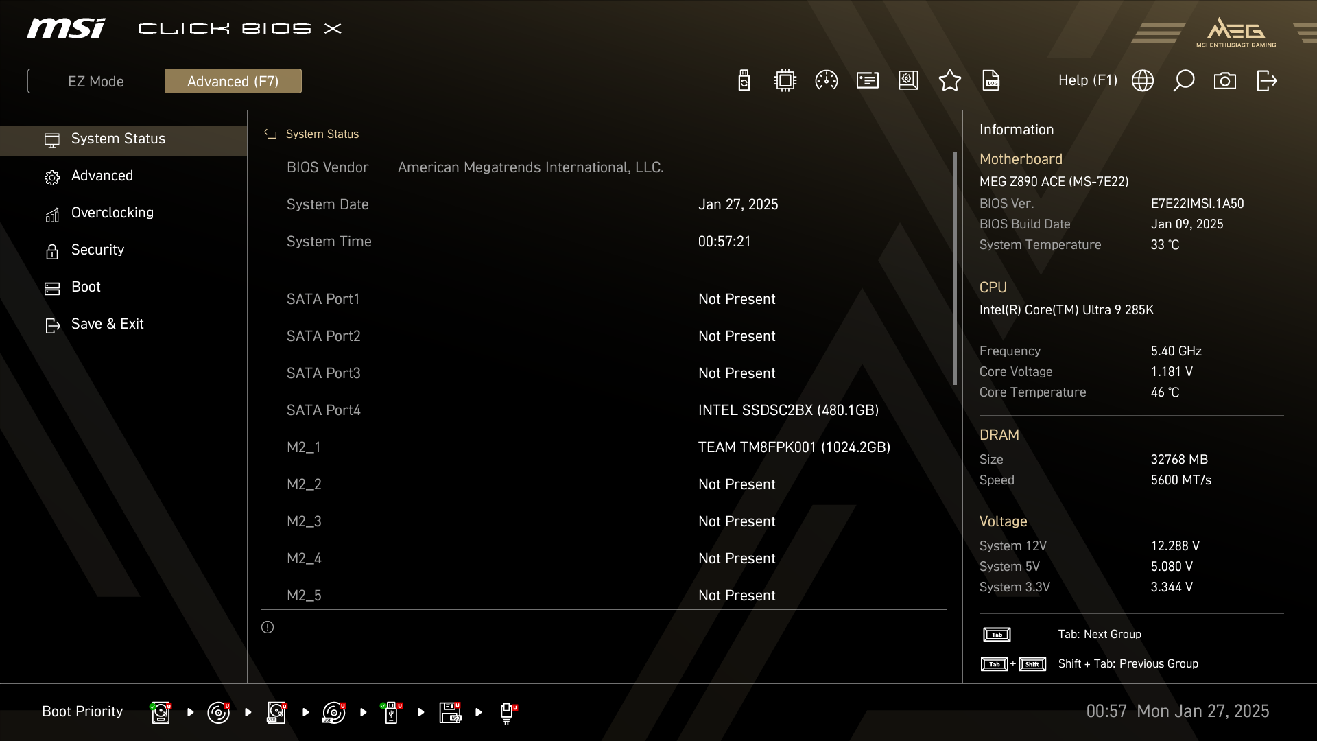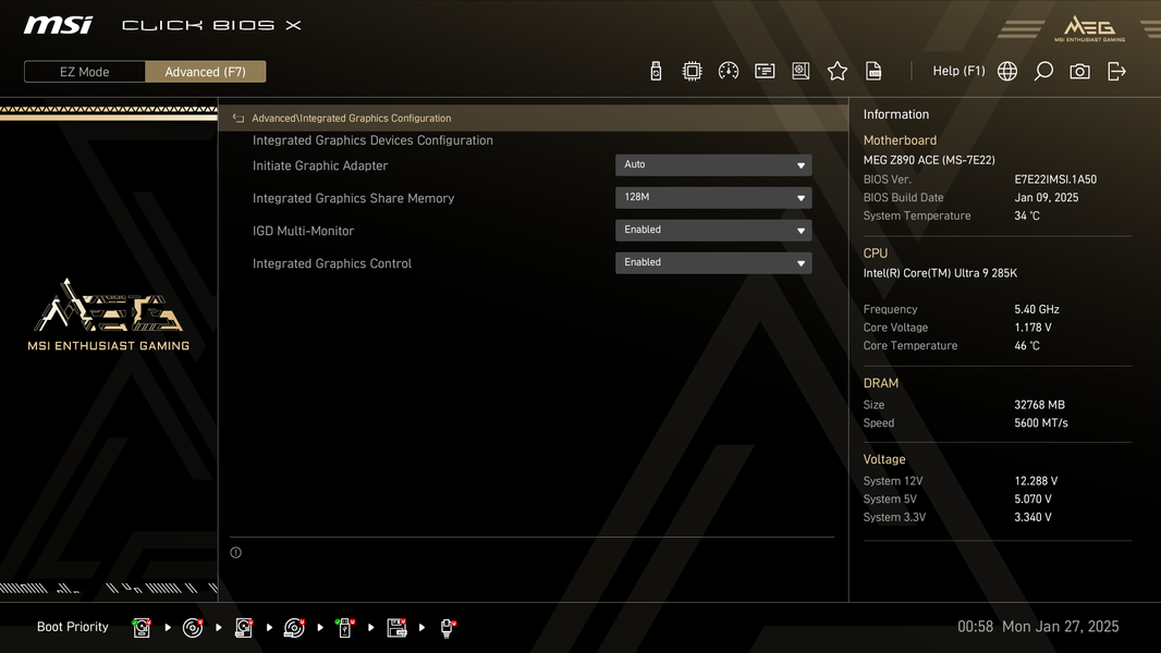 А теперь мы включим аналогичную оптимизацию, но не через MSI Center, а просто в BIOS активируем профиль MSI Extreme.