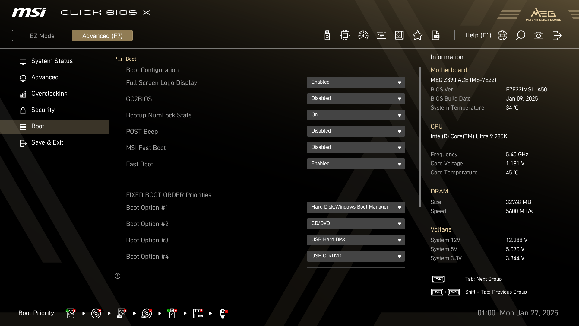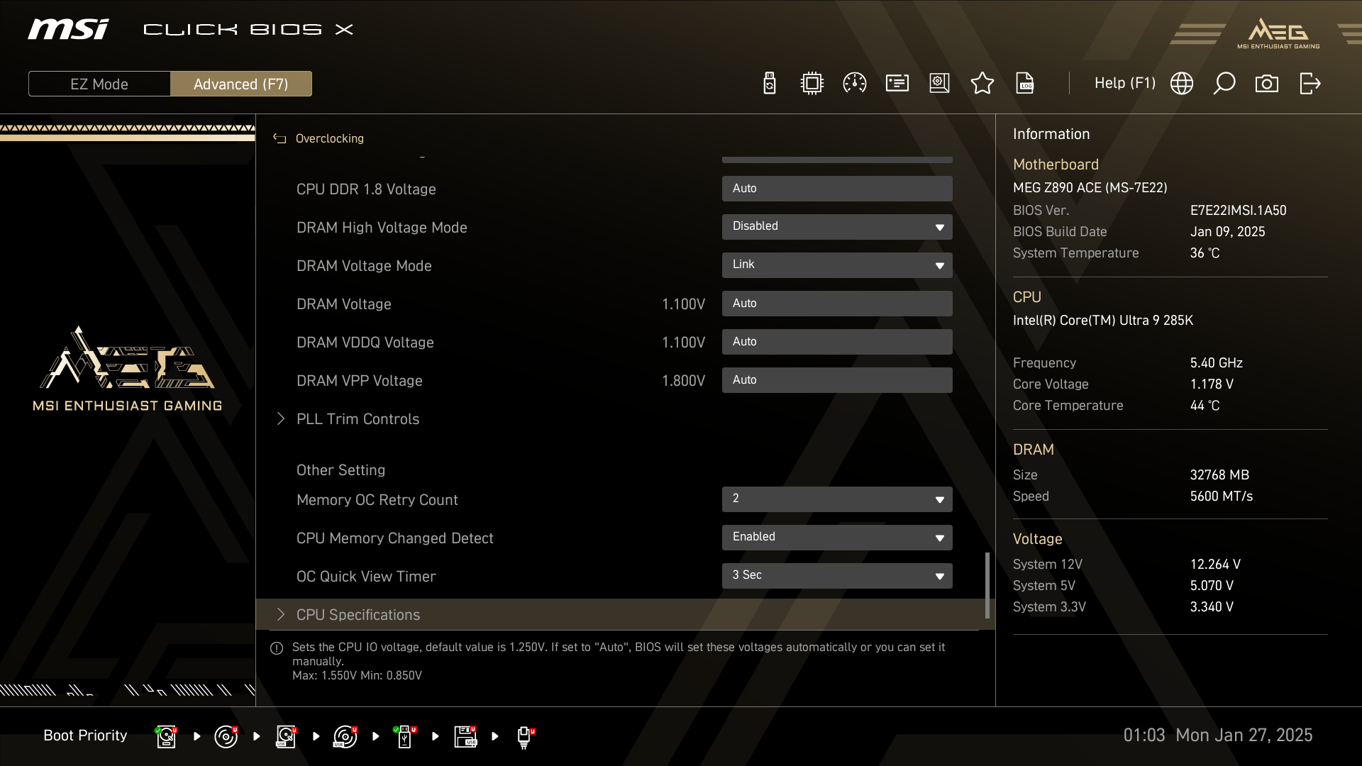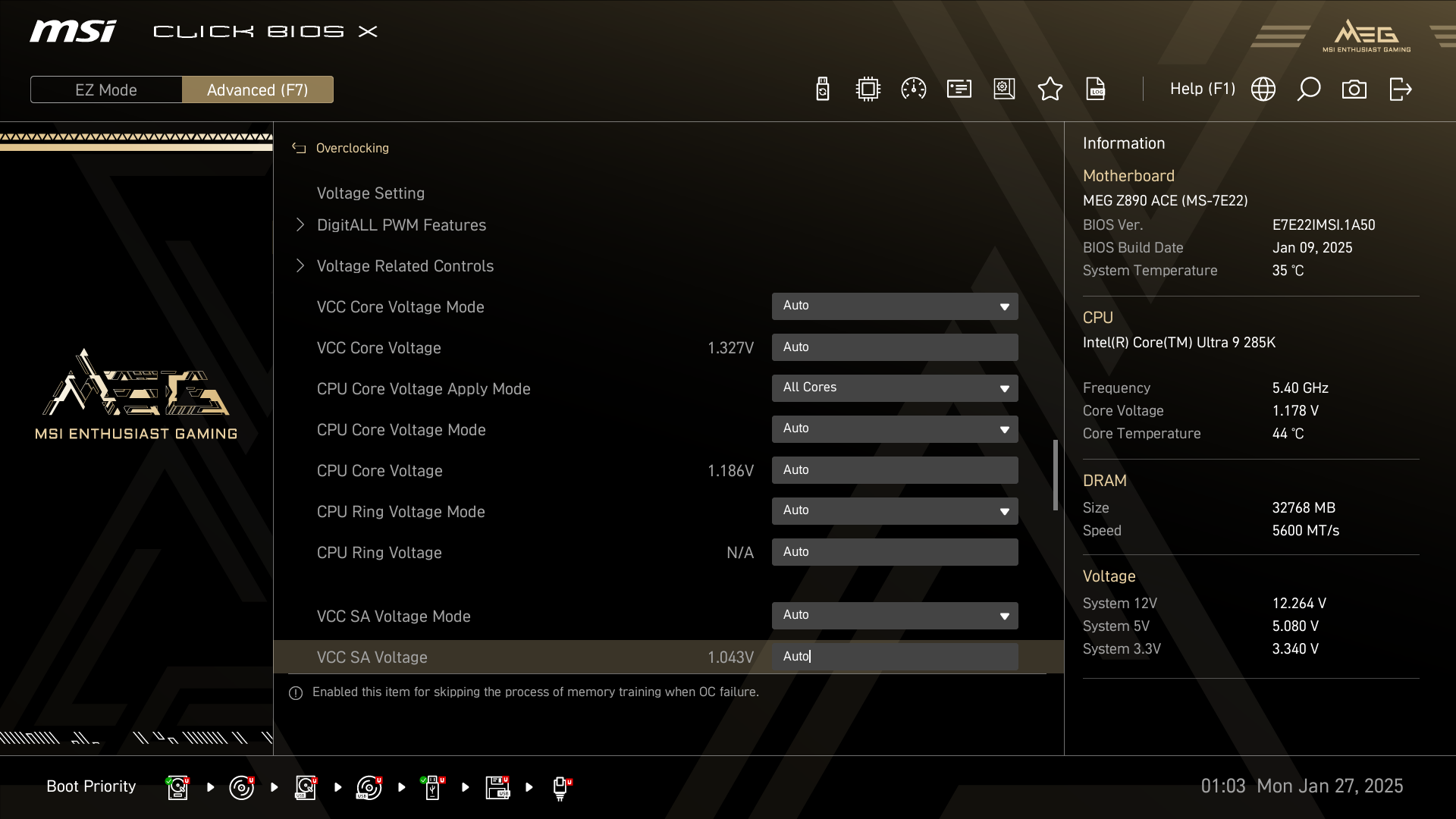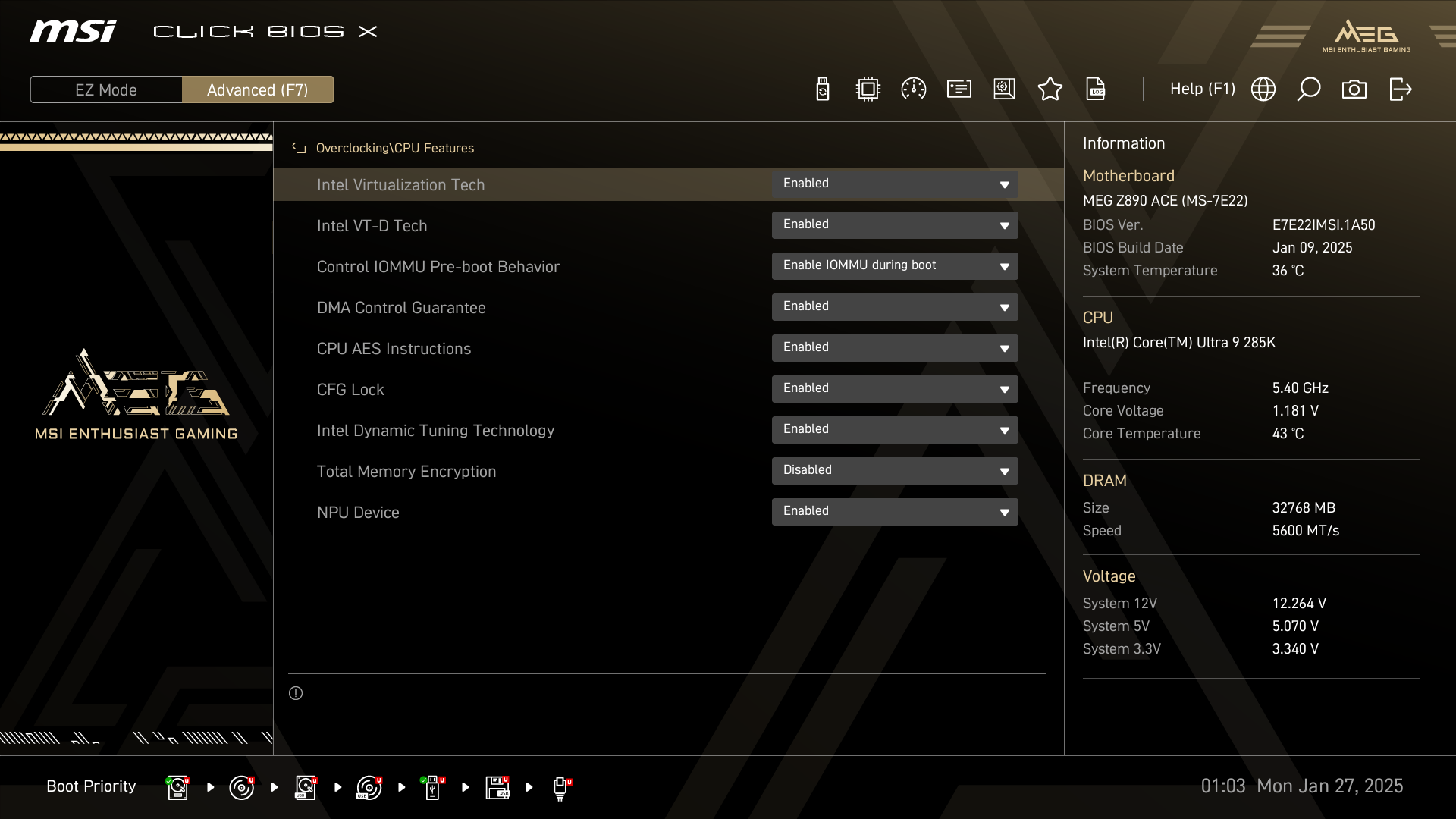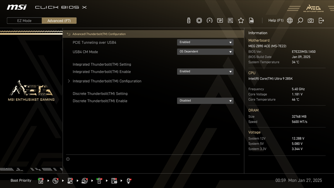 А теперь мы включим аналогичную оптимизацию, но не через MSI Center, а просто в BIOS активируем профиль MSI Extreme.