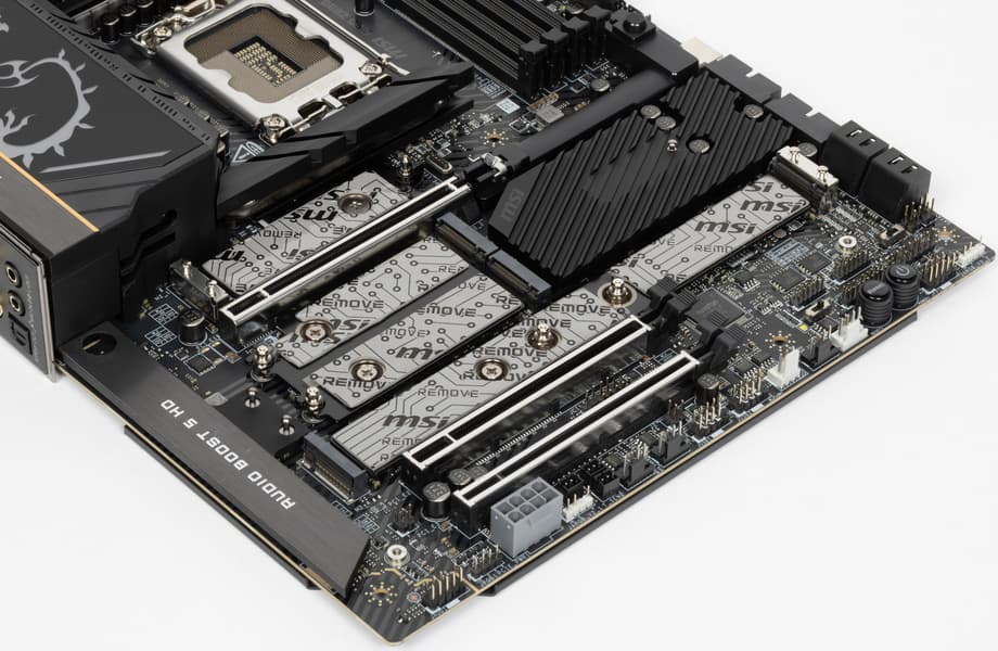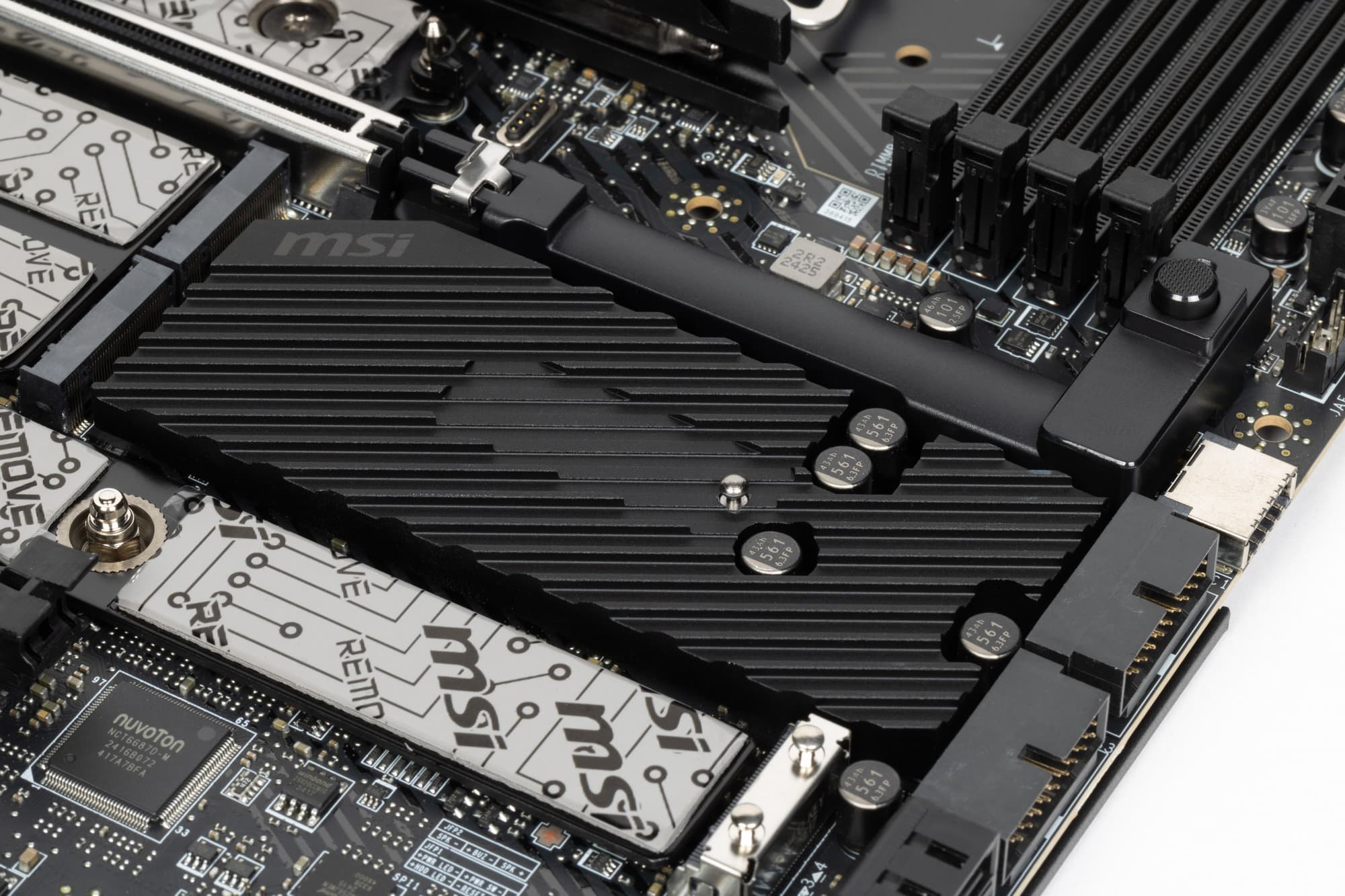 Как я уже упоминал ранее, M.2 слоты также имеют радиаторы: у верхнего — свой персональный радиатор, у остальных — общий.