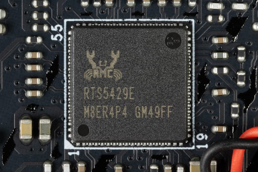 - 13 портов USB 3.2 Gen2: 4 реализованы через хаб Realtek RTS5420 (на него потрачена 1 линия USB 3.2 Gen2 от Z890), еще 4 реализованы через хаб Realtek RTS5429 (на него также потрачена 1 линия USB 3.2 Gen2 от Z890), и еще 5 реализованы через Z890, и представлены на задней панели 11 портами Type-A (красного цвета), а два – портами Type-C;