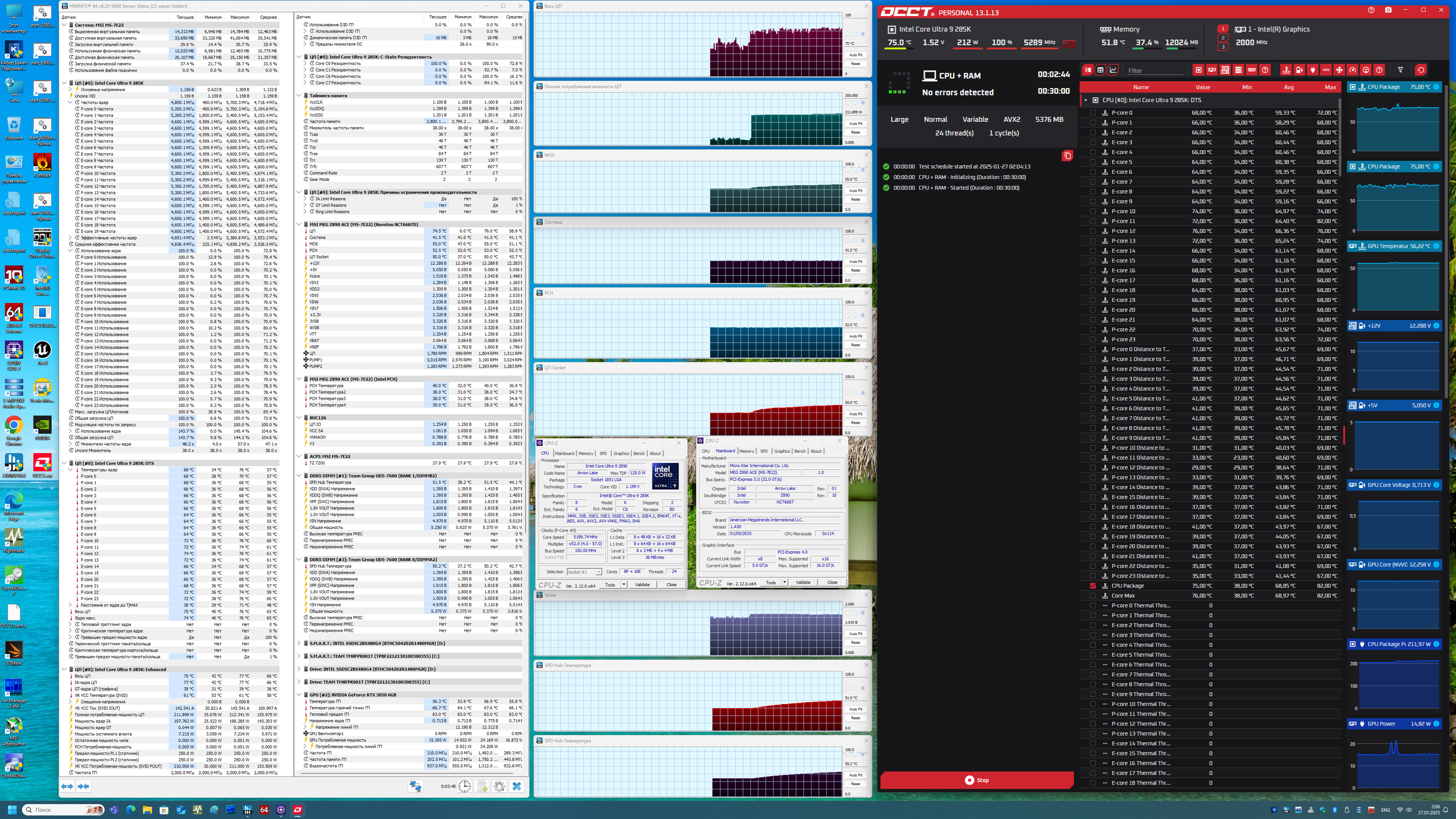 Запускаем все в режиме по умолчанию (в BIOS – профиль от Intel). Затем нагружаем тестами OCCT.