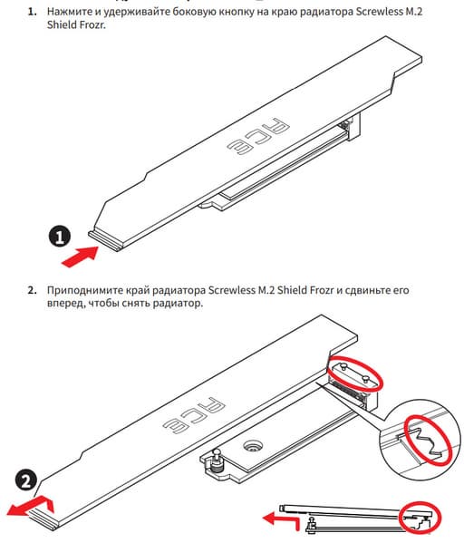 У всех слотов M.2 имеется удобный способ крепления накопителей через установленные на стойках поворотные замки.