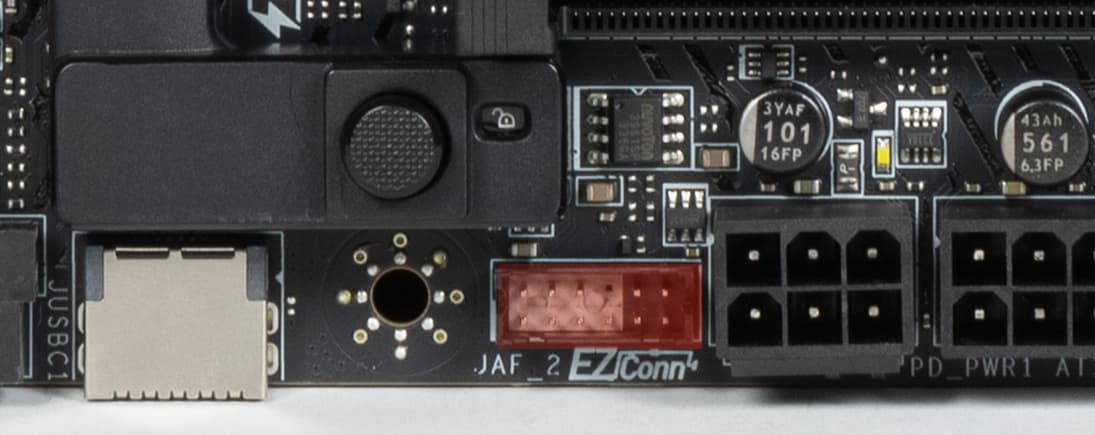 Для удобного извлечения видеокарт из слота PCI_E1 имеется особый механизм EZ-PCIE-Release c кнопкой.