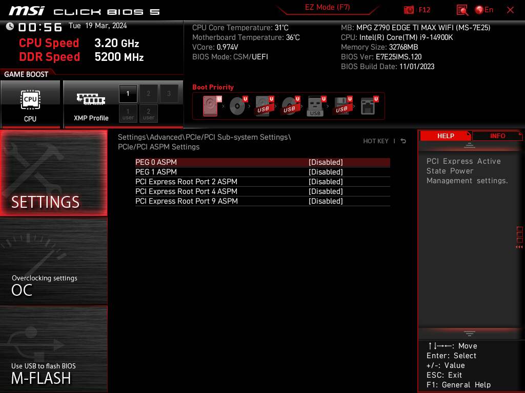 Второй, третий, четвертый и пятый слоты M.2 получают данные от чипсета Z790, при этом все они поддерживают PCIe 4.0. Про первый M.2_1 я уже выше писал: он получает данные от CPU (PCIe 5.0) и делит линии со первым слотом PCI_E1. При этом М.2_3 поддерживает модули с любым интерфейсом, а все остальные работают с модулями только с PCIe интерфейсом.