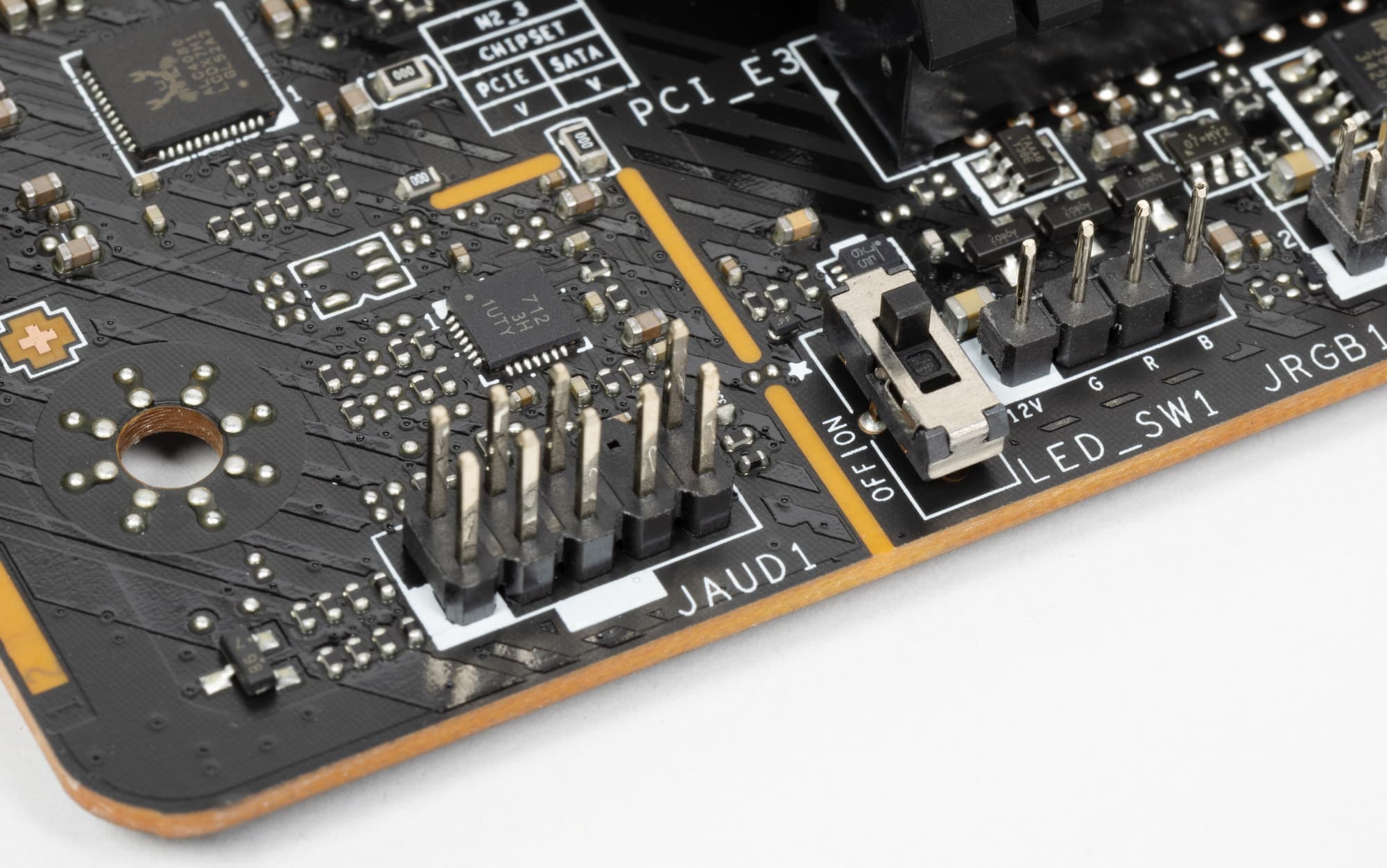 - Переключатель: или слот M.2_3 или порты SATA_1/2 (максимально 4 линии PCIe 4.0);