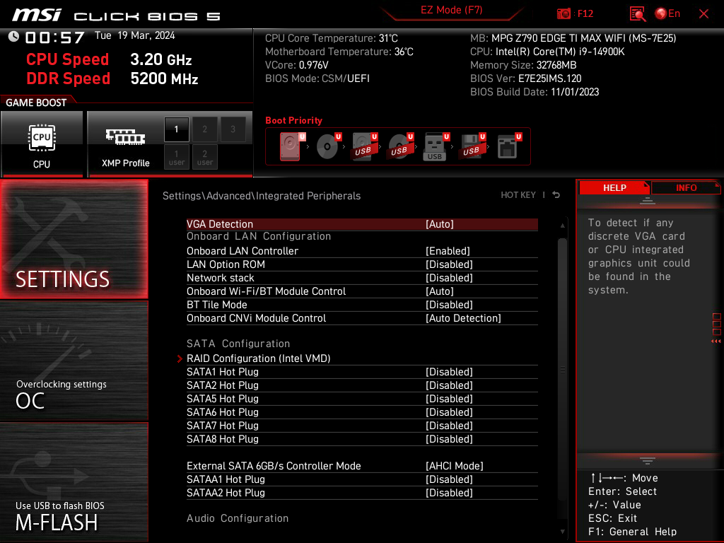 Напомню, что Z790 имеет 38 высокоскоростных портов (High Speed In Out, HSIO) в целом, мы видим поддержку до 5х интегрированных USB 3.2 Gen2x2 (до 20 Gb/s) портов (правда каждый из них требует поддержки со стороны двух USB 3.2 Gen2, неважно, от самого Z790 или сторонних хабов).