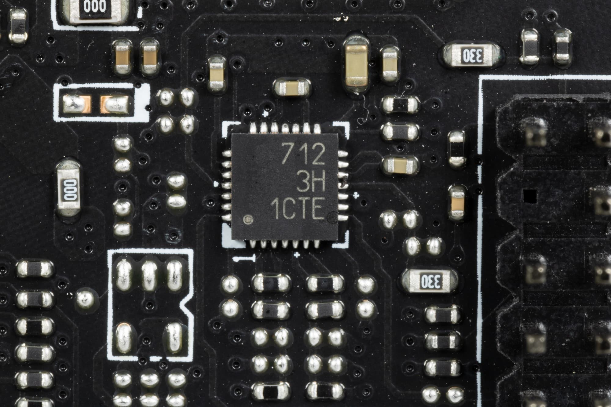 Каждый канал фазы имеет суперферритовый дроссель и RAA 220075RO MOSFET от Renesas на 75 А для встроенного графического ядра, ISL99390 (90A, Renesas) для VCore и MP87670 от Monolithic Power Systems для VCCIO на 70А.