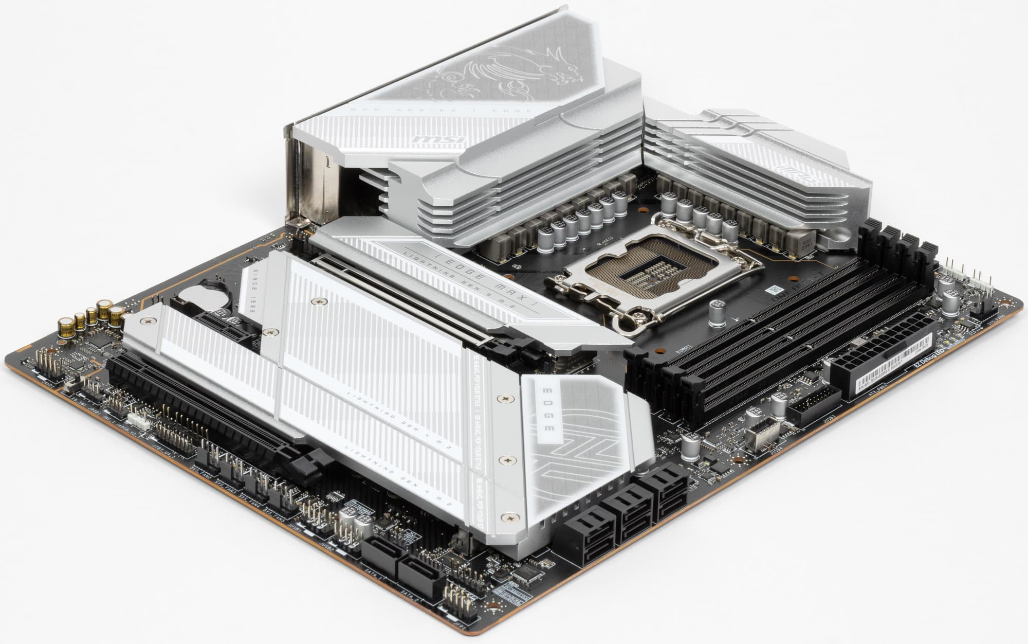 Герой нынешнего обзора — MSI MPG Z790 Edge TI Max WiFi. То есть материнка из семейства MPG (MSI Performance Gaming), которая не относится к топовым (все флагманы — в семействе MEG), однако являет собой все равно очень мощный инструмент для современного ПК, обладая всеми широкими возможностями как по набору периферии, так и по возможностям питания.