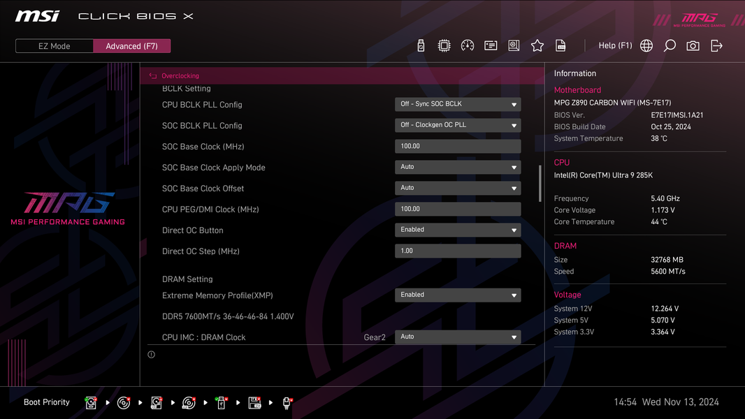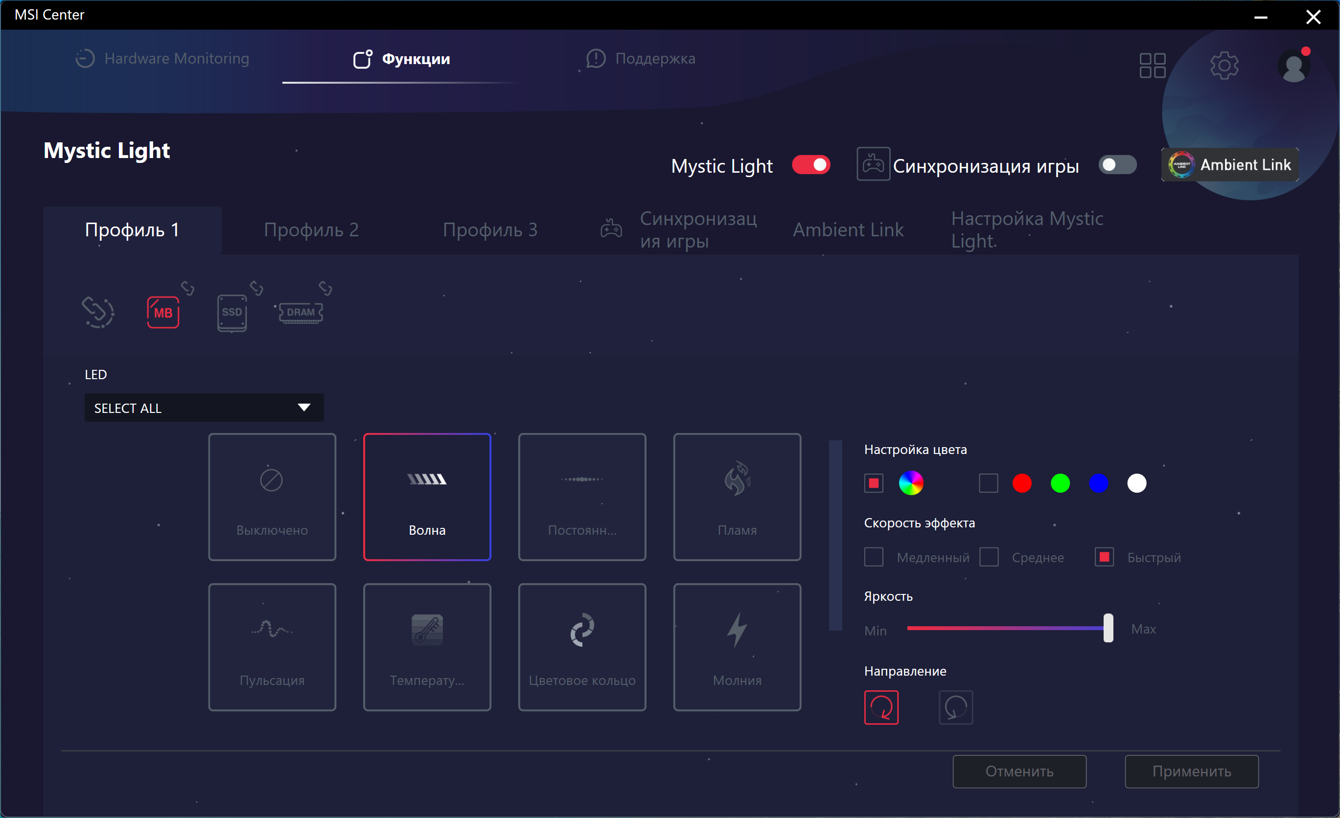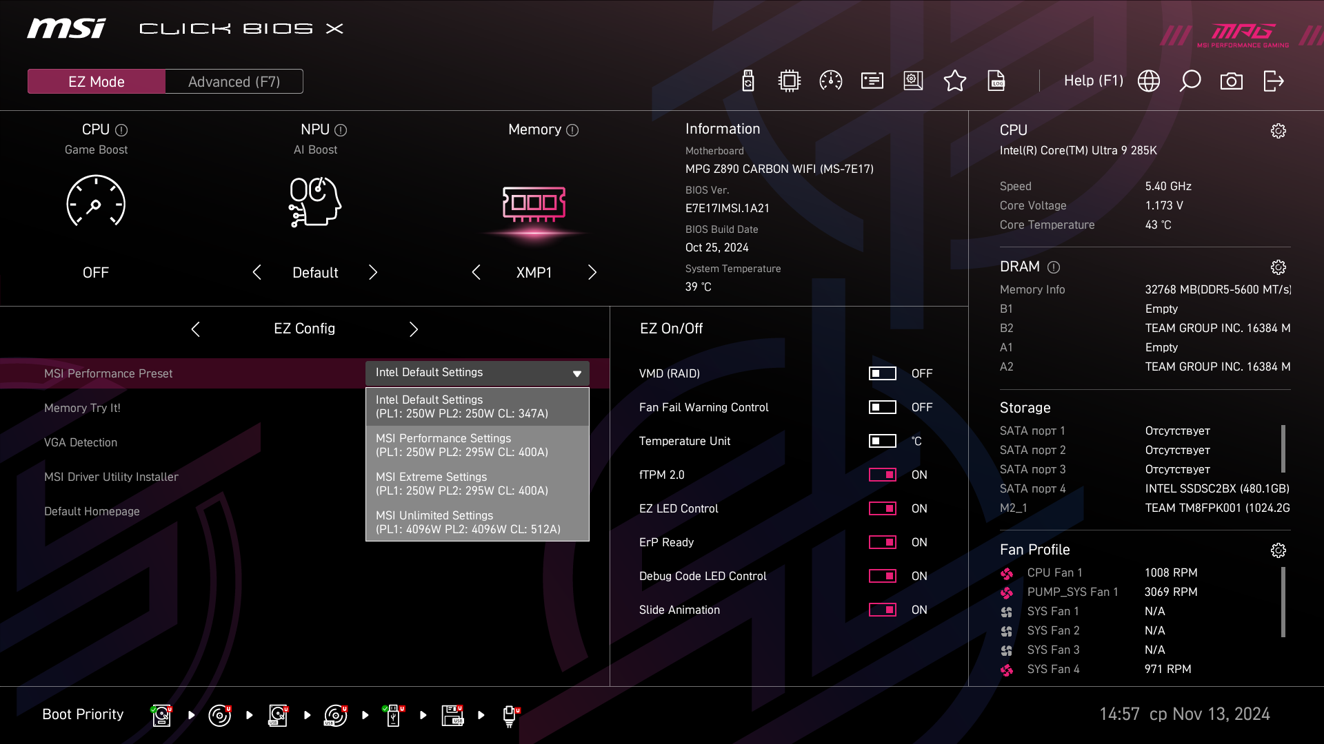 Ну а что, если выключить эти все программные «пилюли» через MSI Center, а просто в BIOS включить профиль MSI Extreme?