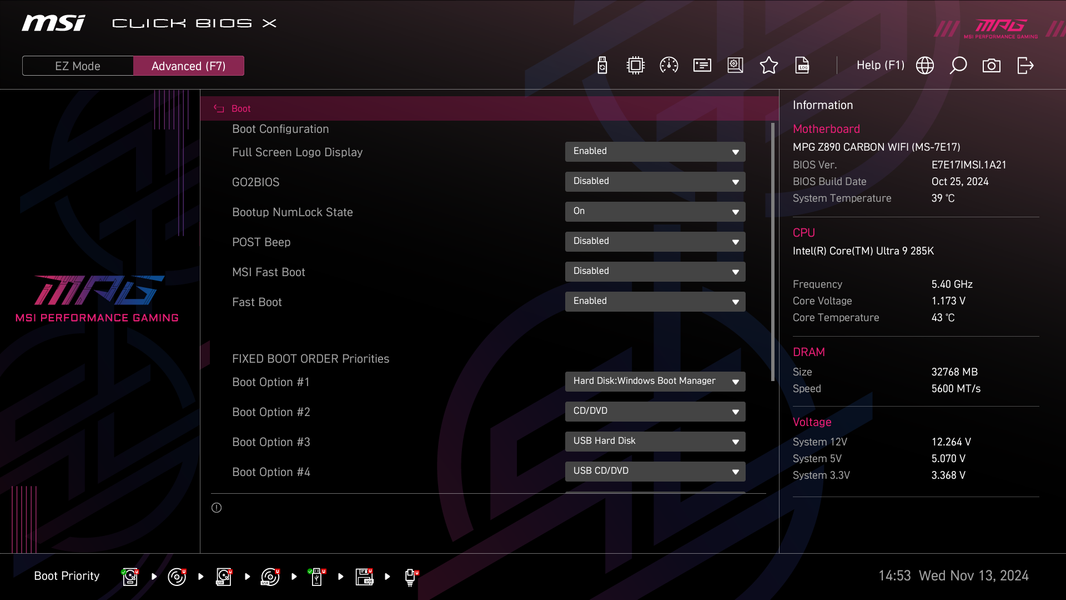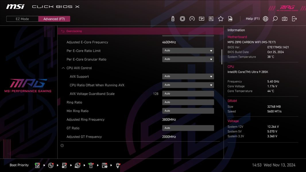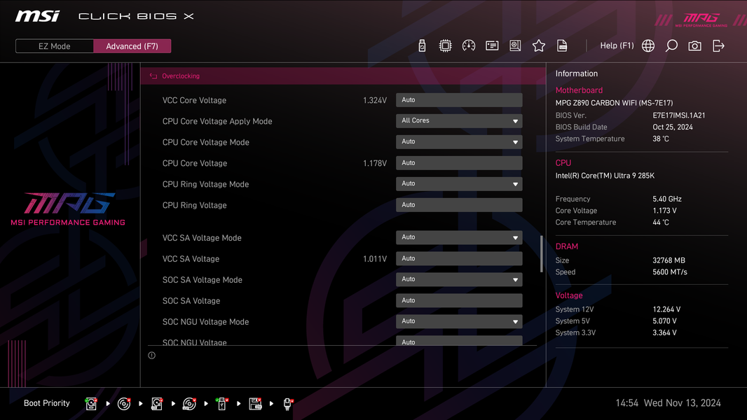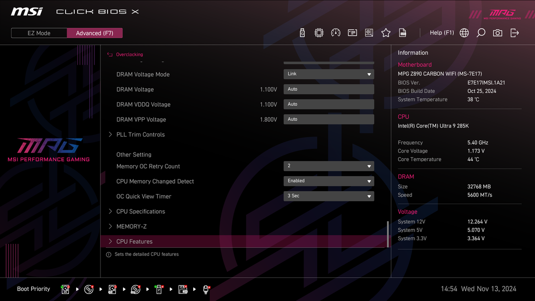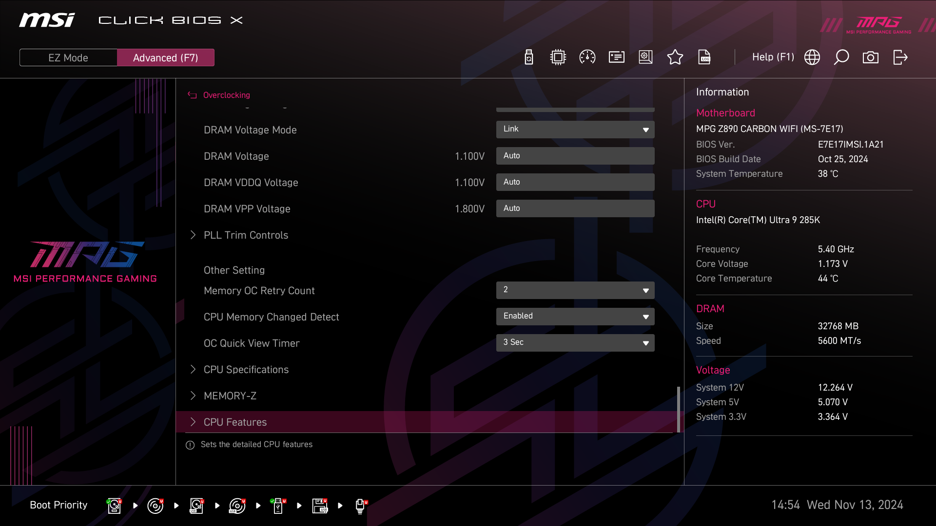 Ну а что, если выключить эти все программные «пилюли» через MSI Center, а просто в BIOS включить профиль MSI Extreme?