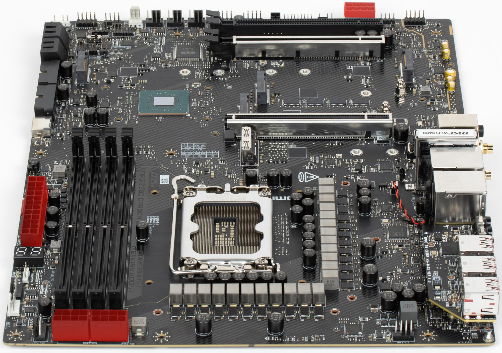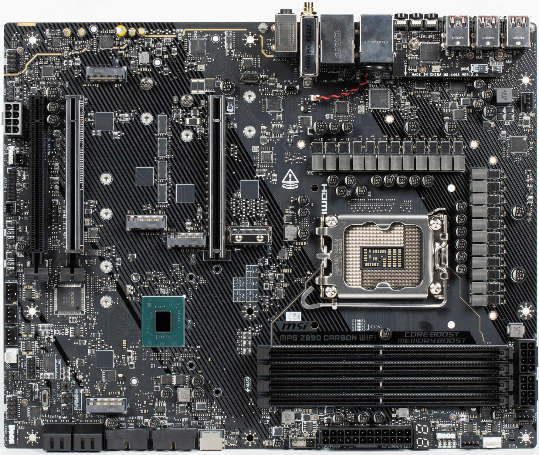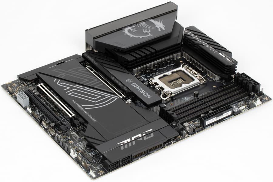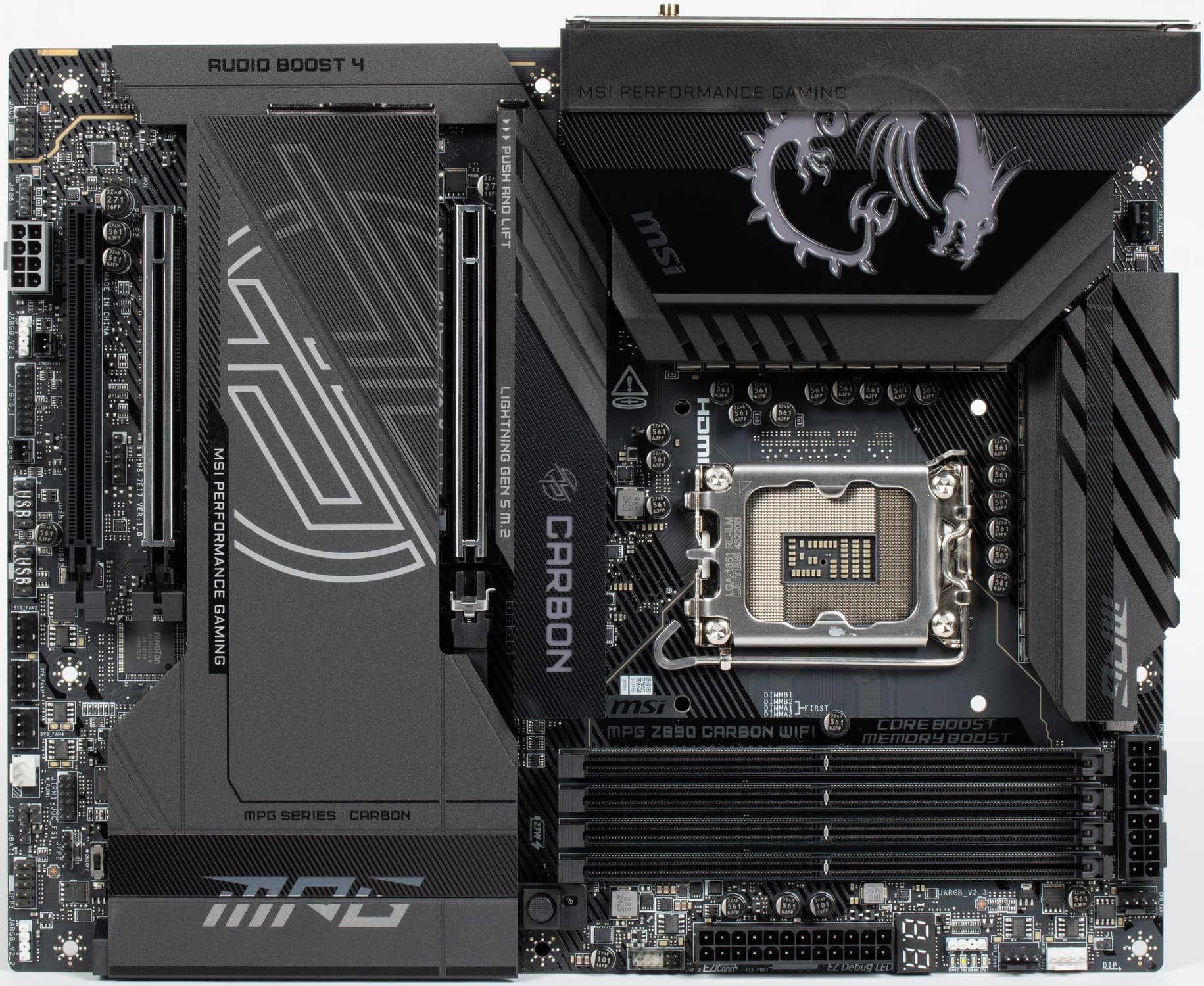 Третьей материнской платой на новом чипсете Z890 и с новым процессорным сокетом LGA1851, попавшей к нам в лабораторию, стал продукт компании MSI, а именно MSI MPG Z890 Carbon WiFi. Эта матплата относится к игровой серии MPG (MSI Performance Gaming), которая стоит на втором месте после MEG (MSI Extremal Gaming). Поэтому данная плата, хоть и топовая, но не флагманского уровня.