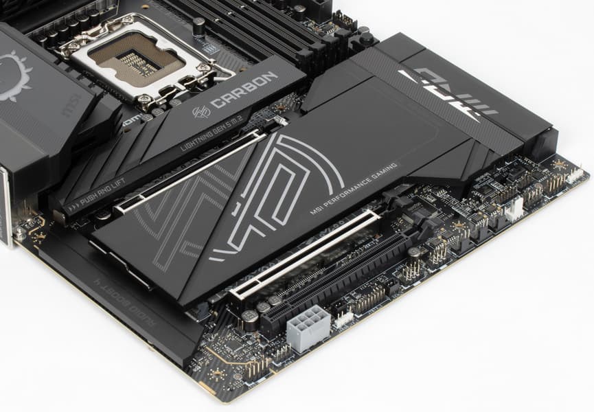 Выше я вел речь про первые PCIe x16 (PCI_E1/2), подключенные к процессору. Третий PCIe x16 (PCI_E3) подключен к Z890 и работает в режиме x4.